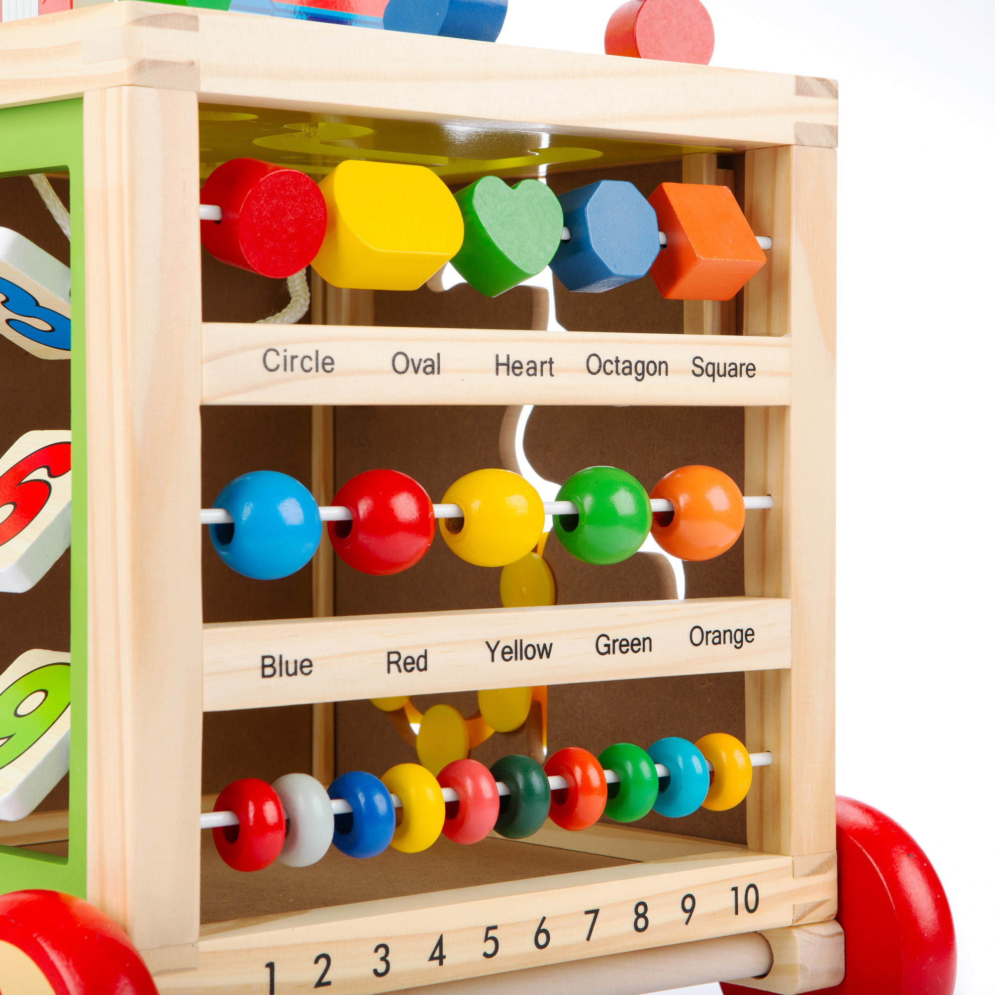The wooden walker with a multifunctional cube is not just a toy but primarily a tool for developing essential skills in young children: