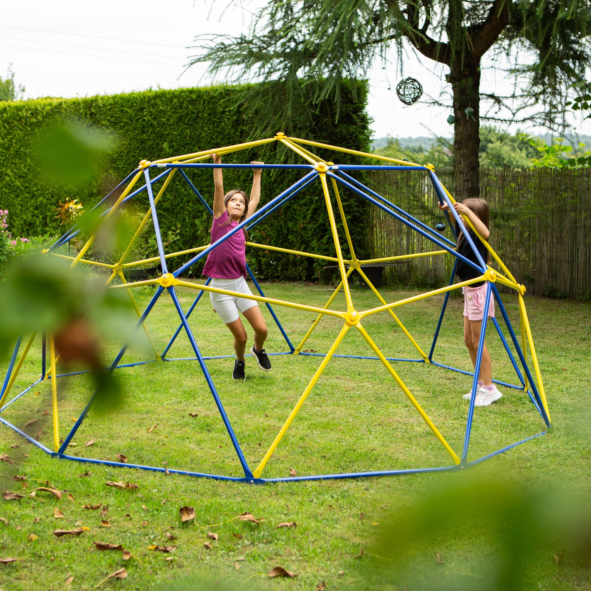 Safe space – climbing grips provide a comfortable and secure hold. Smooth edges prevent abrasions and injuries. The metal construction ensures the structure is stable and safe for your child. The dome can accommodate up to 12 people at the same time.