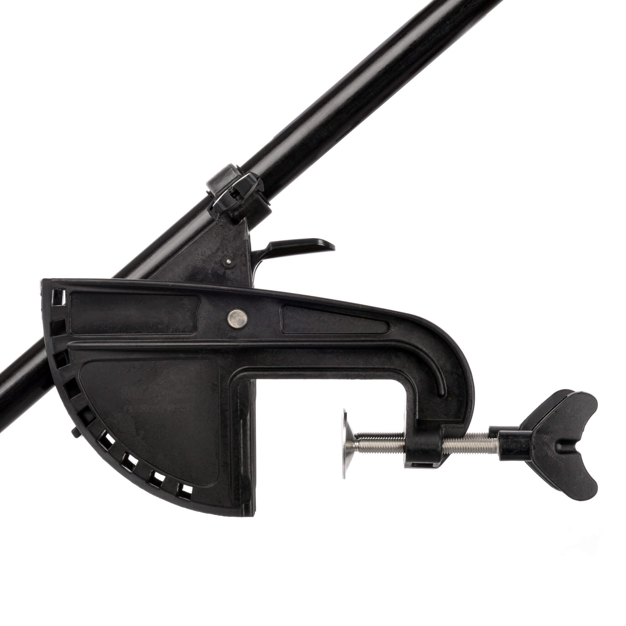 The compact design ensures convenient portability and easy installation on a boat or dinghy. The universal transom mount is equipped with two clamping screws, making it easy to secure and adjust to different transom types. It also features a 9-position tilt lever, with a depth adjustment lock located above it, secured by a wingnut clamp. The materials used in the construction are resistant to thermal deformation.