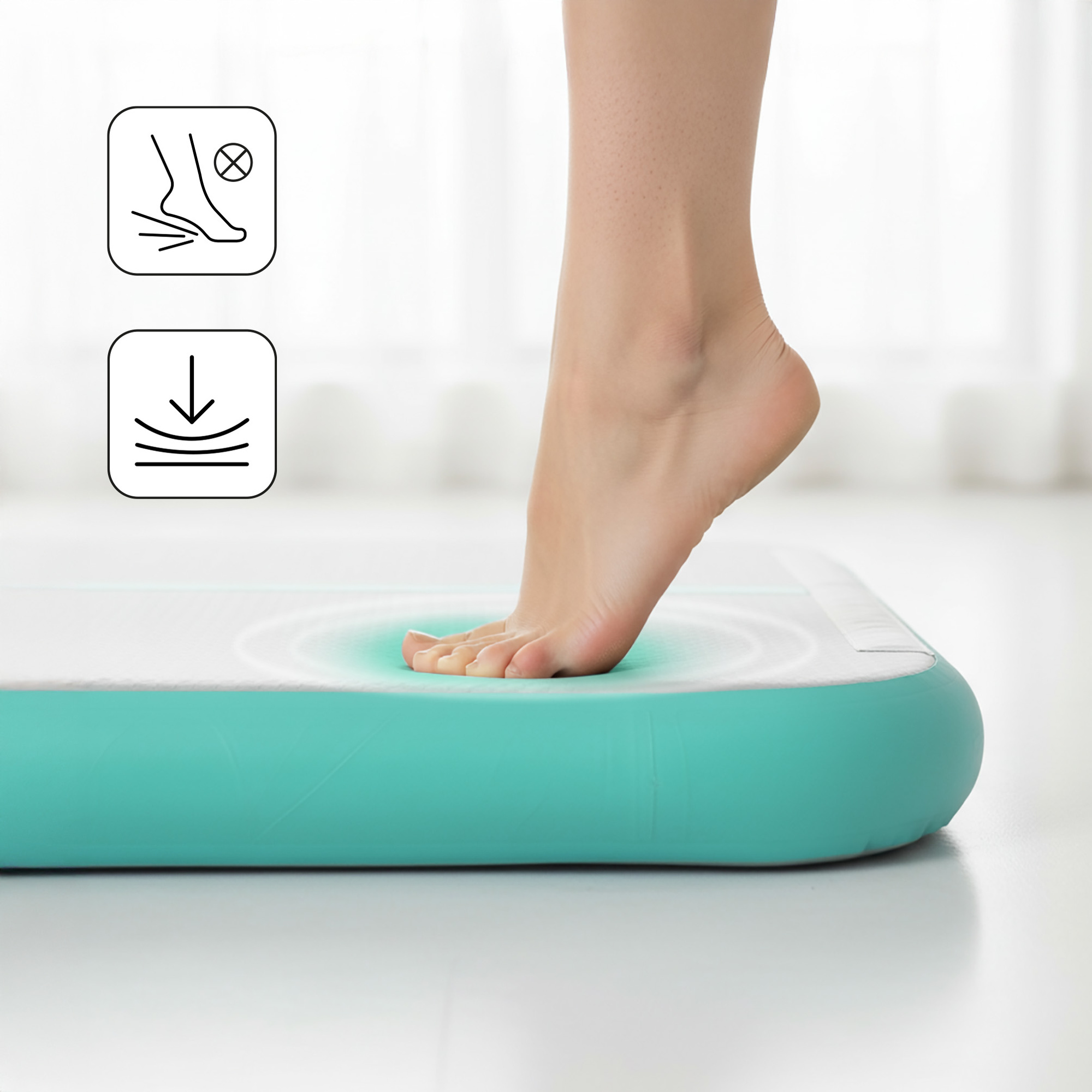 High quality – the Airtrack is a safe surface that cushions jumps, flips, and other acrobatic exercises. Drop-stitch technology, involving two layers of vertically connected PVC fabric, ensures dense internal fibre structure, helping the material maintain its shape during inflation and use.