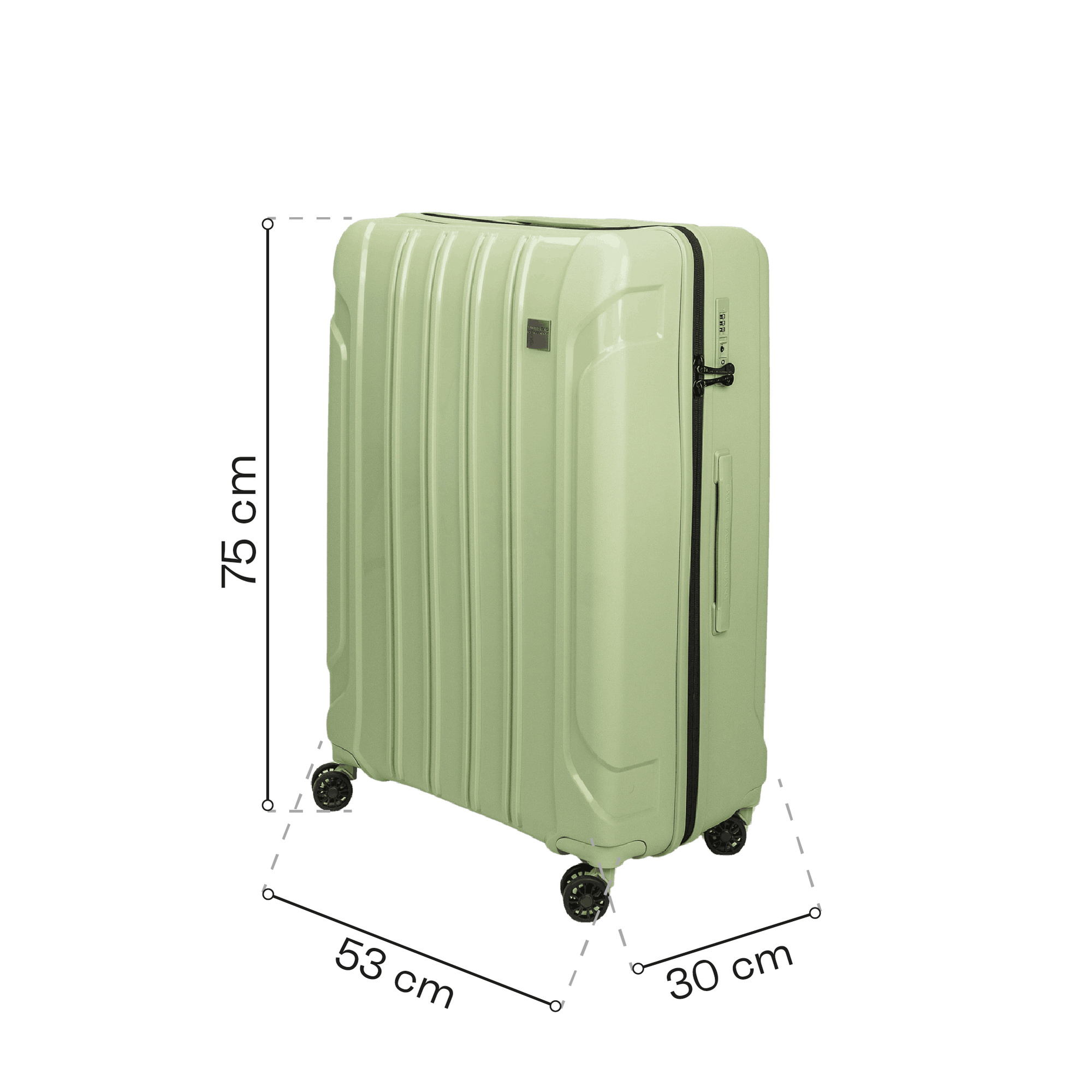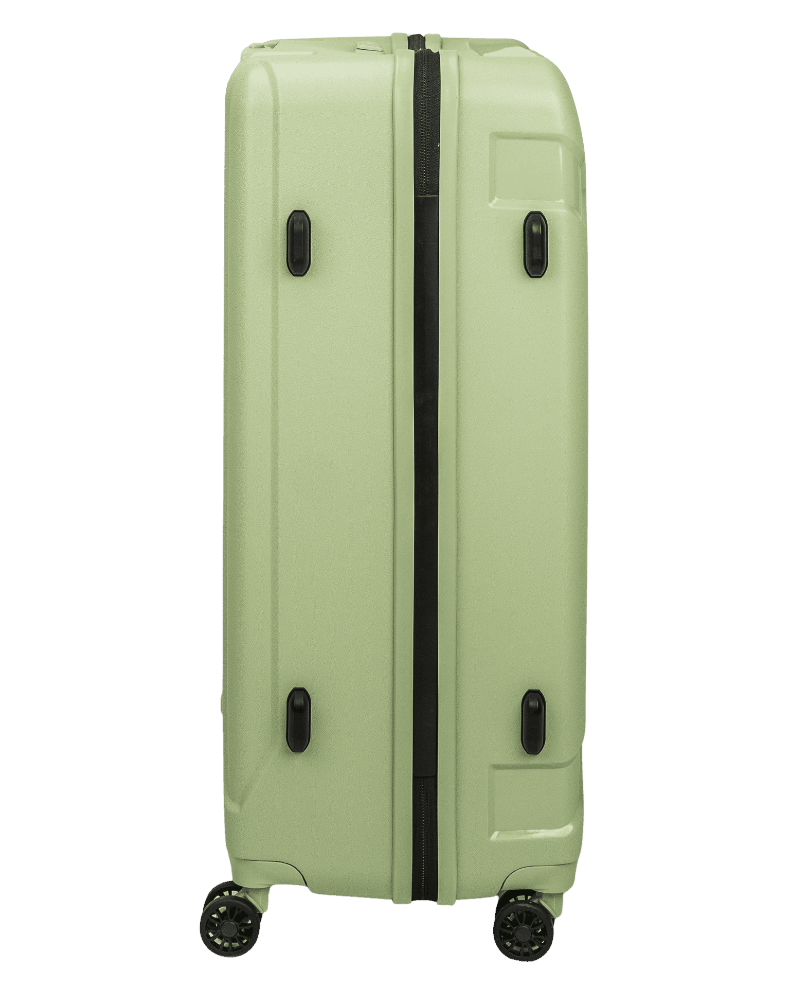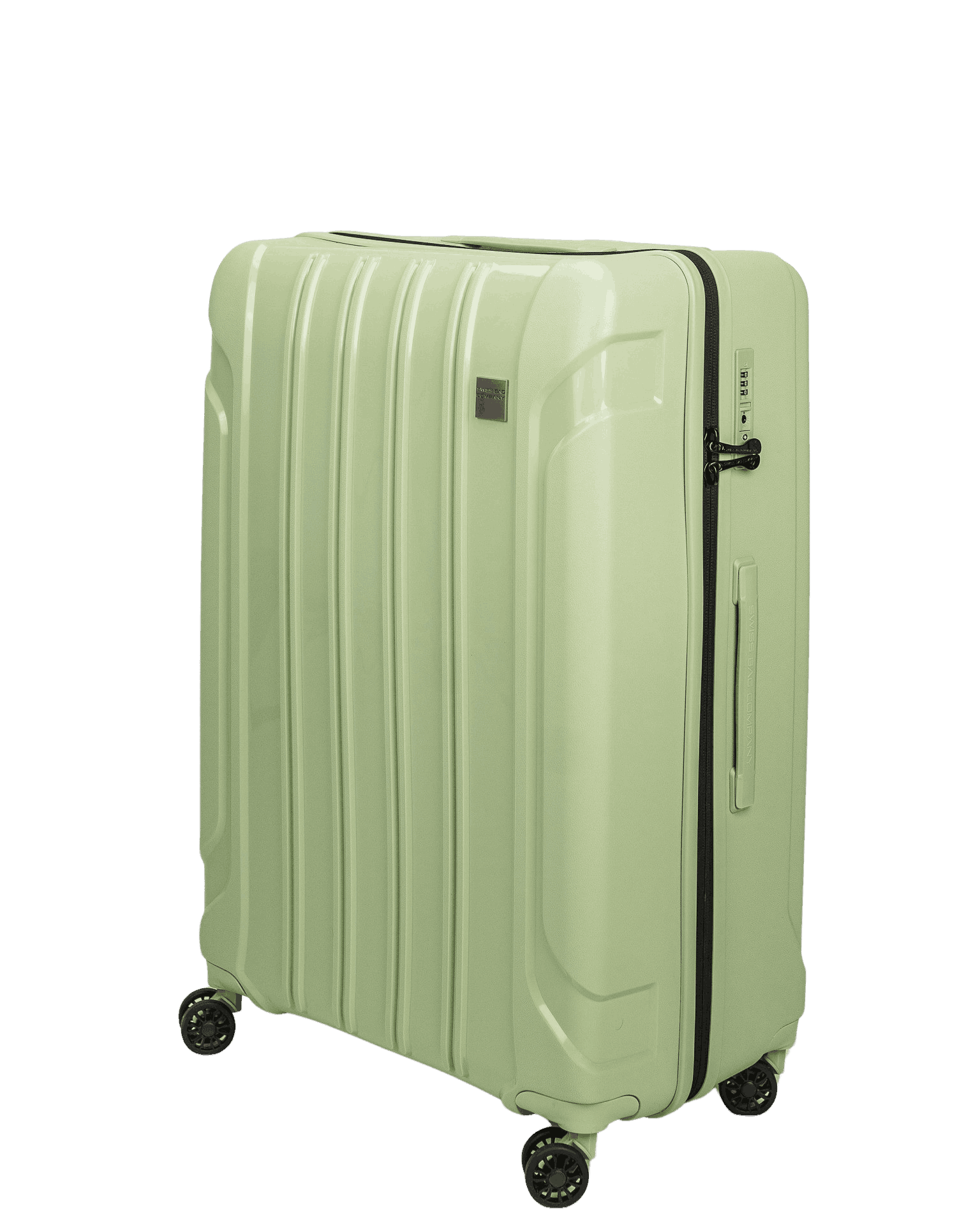 The collection was created with damage-resistant, high-quality polypropylene, which is lightweight and flexible, significantly improving comfort of use. The front of the suitcase features an original inscription with the brand name.