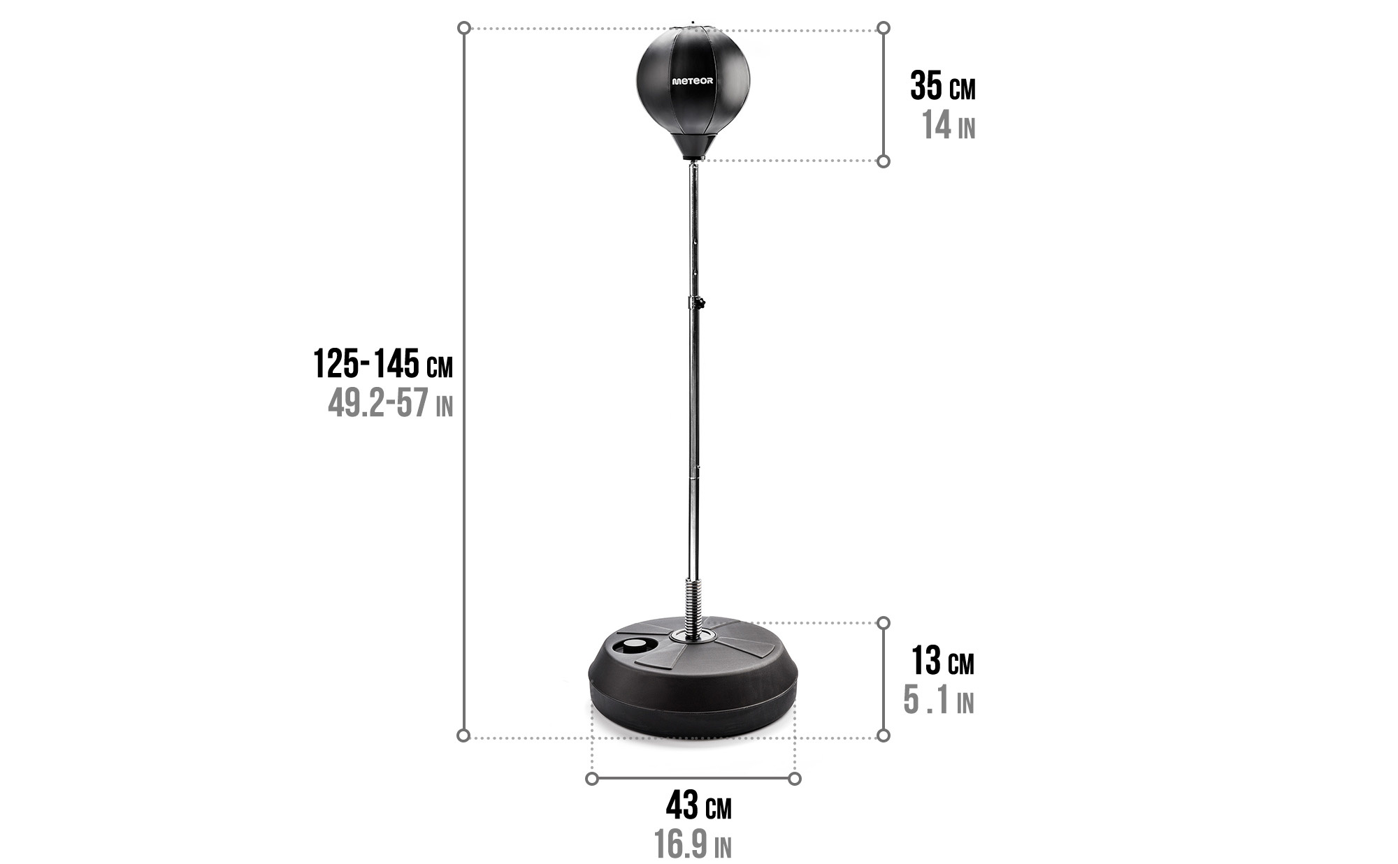 Complete readiness – punching ball on stand, gloves, pump with needle, assembly kit – this set includes all the essential elements, so you do not need to buy additional equipment. The Meteor punching ball with accessories is everything you need to start training straight away!