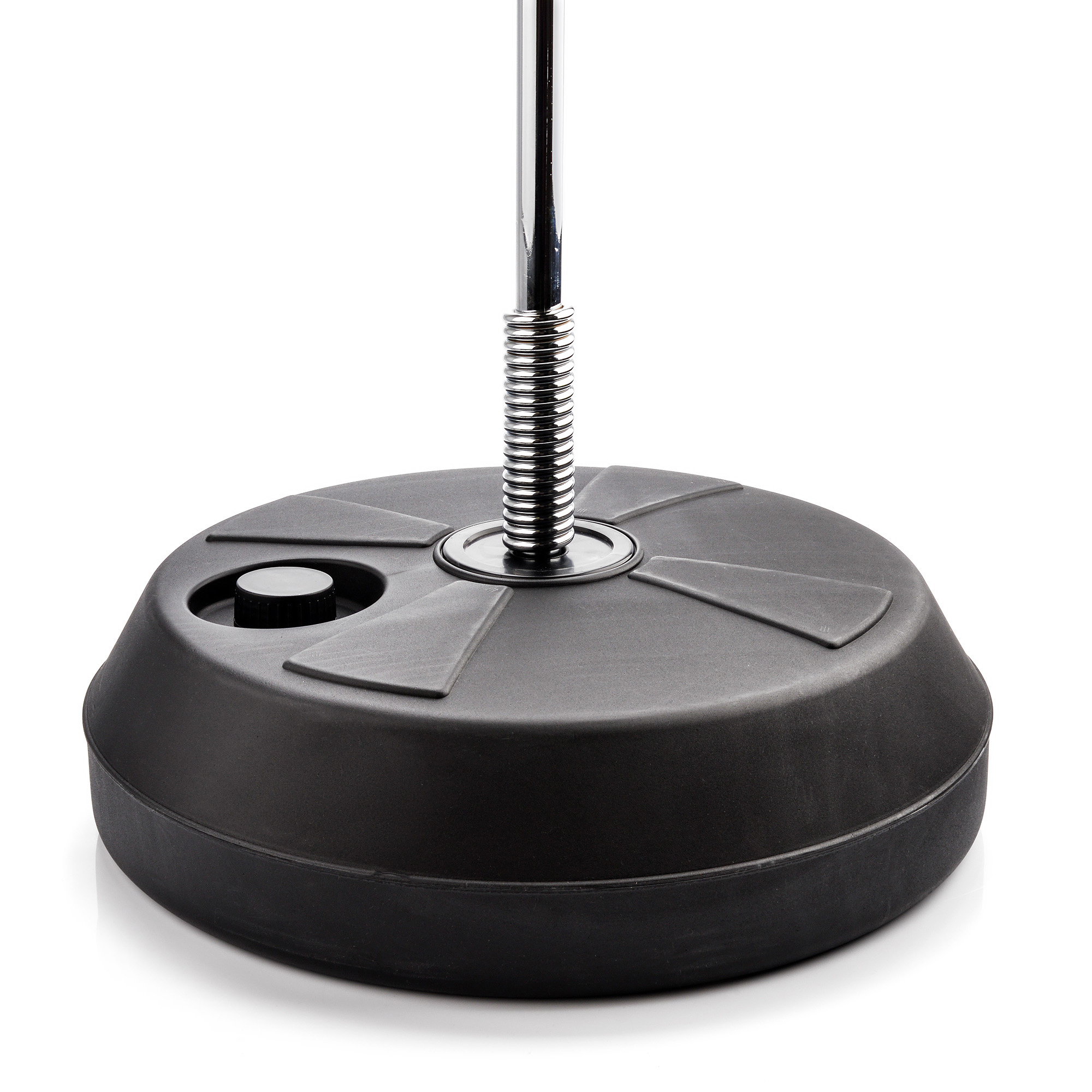 The 4-level height adjustment of the pole (within 125–145cm) allows you to set the ball at the right level for the user. The heavy base with a diameter of 43cm can be filled with sand or water (sand filling recommended). Its round shape ensures even filling across the entire surface, guaranteeing durability and stability even during intensive training.