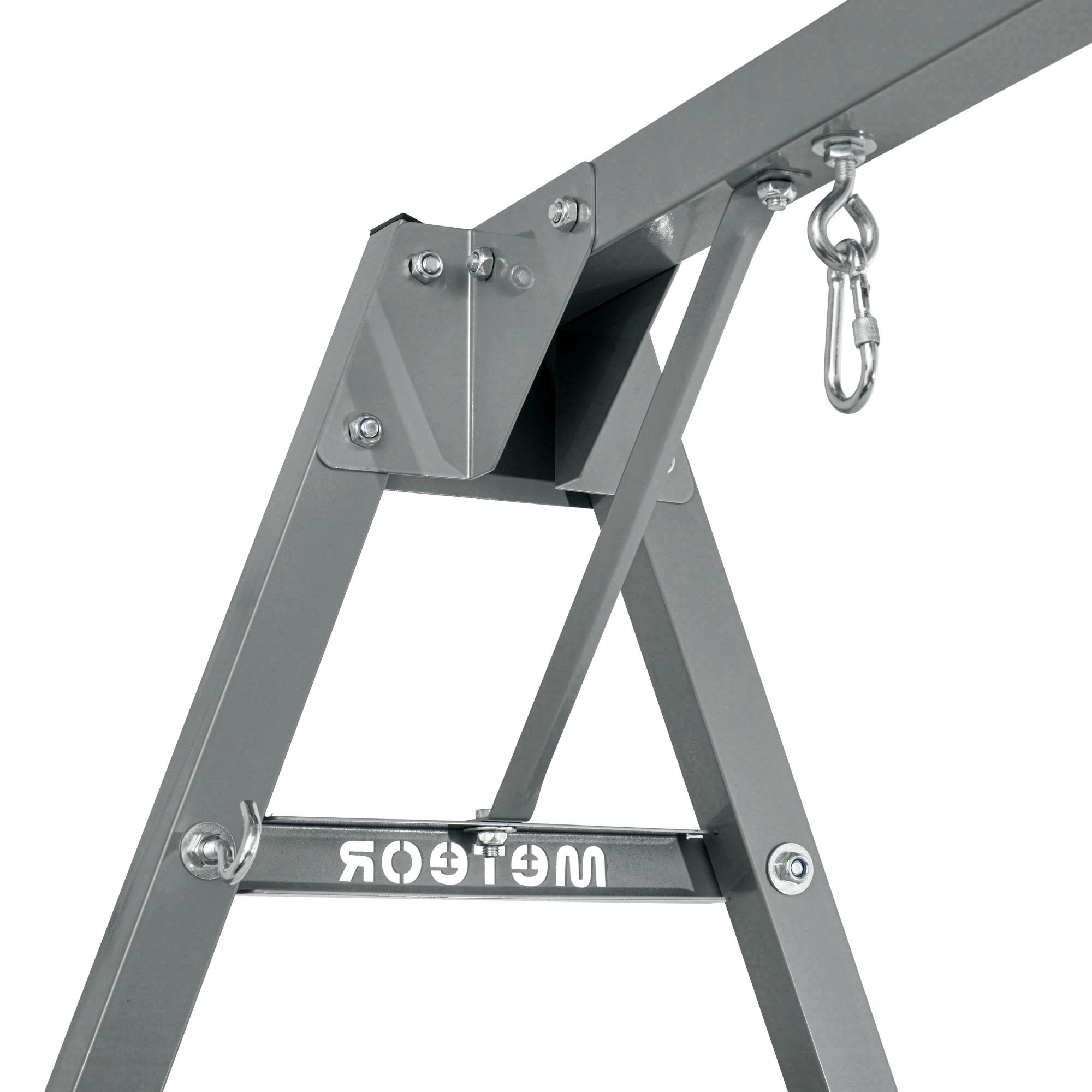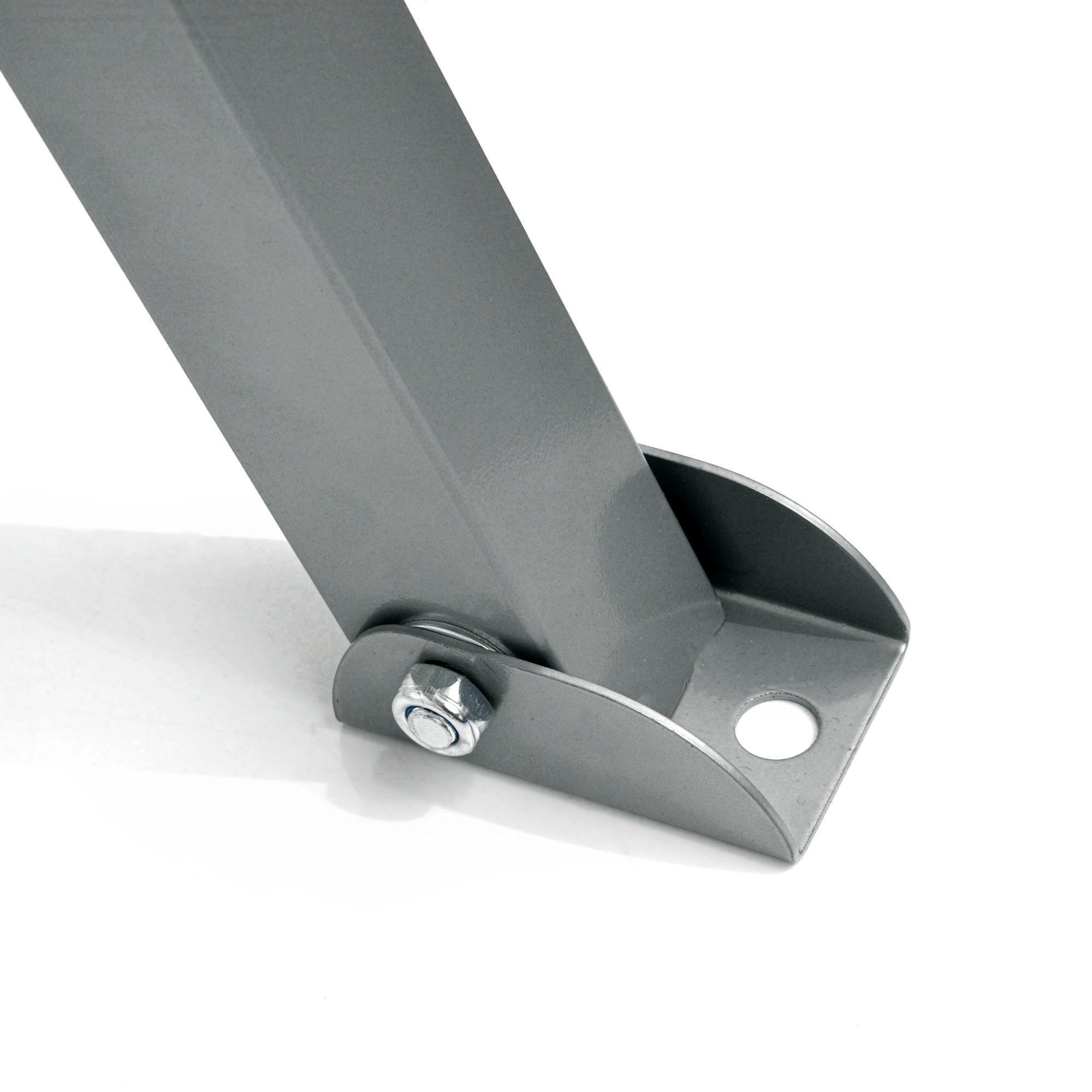 Durable workmanship – the A-shaped construction provides exceptional stability mainly due to reinforcements in the form of struts and brackets attached to the upper beam. Such solid joints can support up to 180 kg. Strong legs are equipped with movable feet enabling the frame to be anchored to the ground with anchors or screws – depending on the surface.