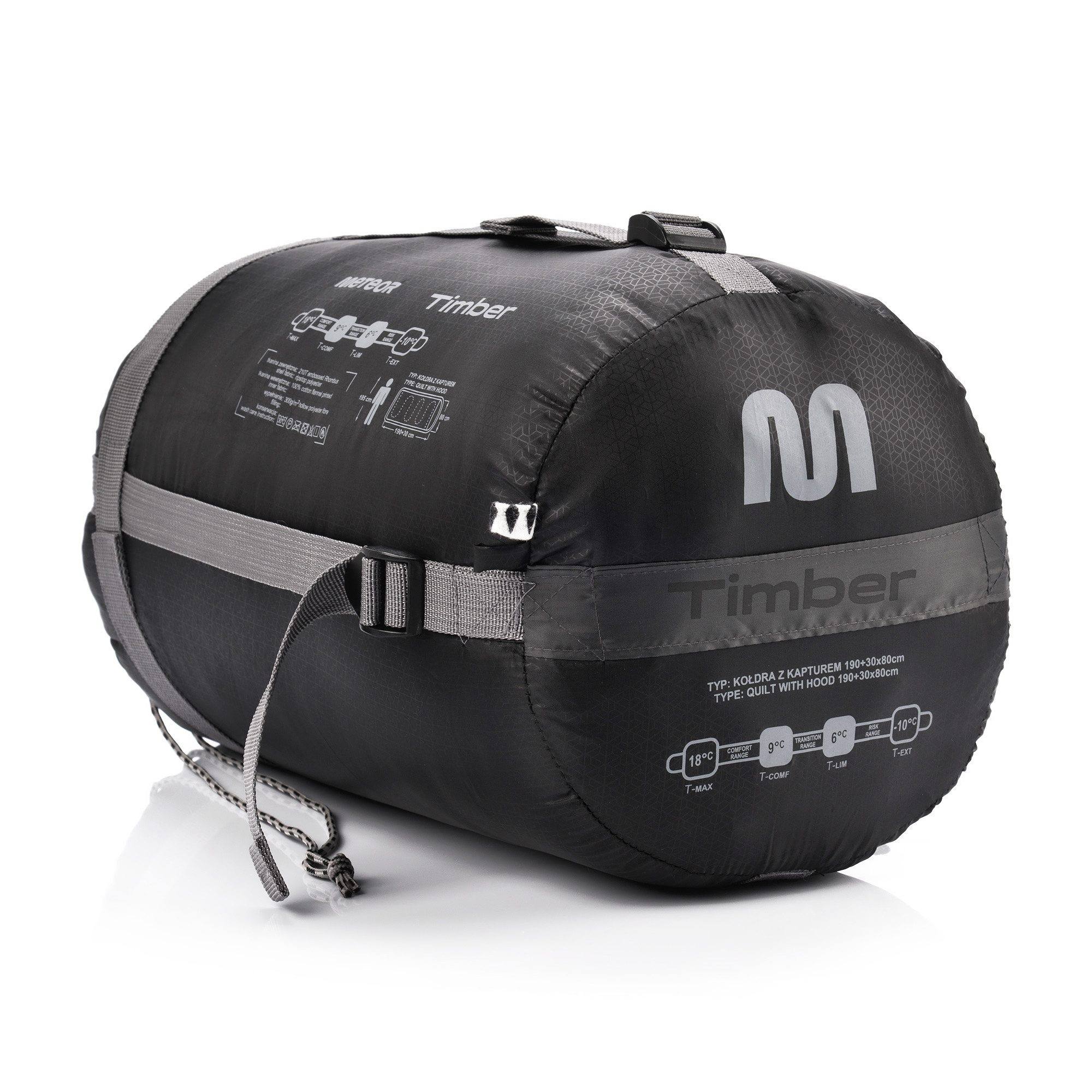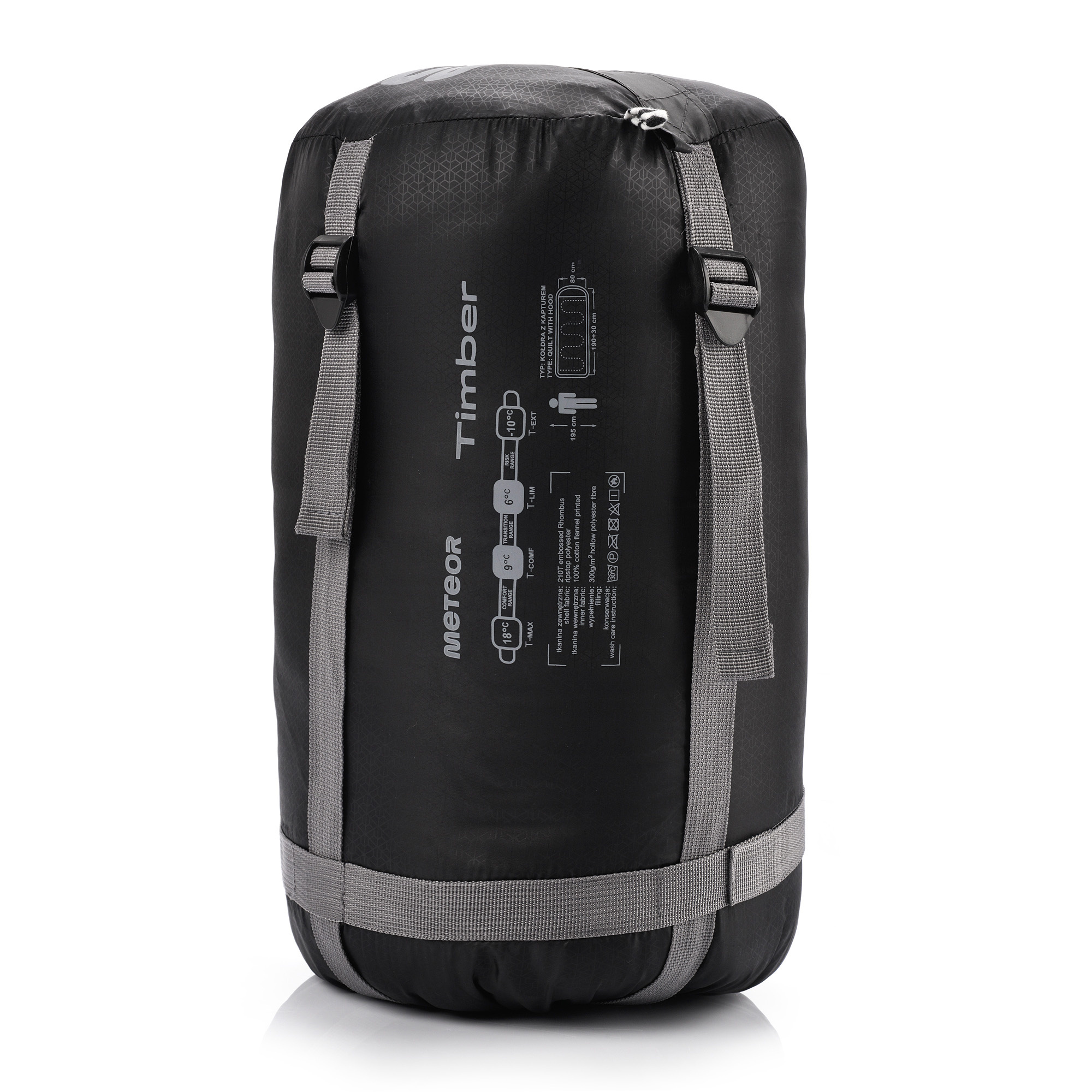 Despite its 190 cm length, this sleeping bag folds down compactly. It fits into a color-matched cover measuring just 37cm x 23cm. The cover features side straps for compression, reducing its size to a mere 27cm. Now you can pack it easily and save space! Choose the METEOR TIMBER sleeping bag for unbeatable performance. Stay warm, cozy, and prepared for any adventure.