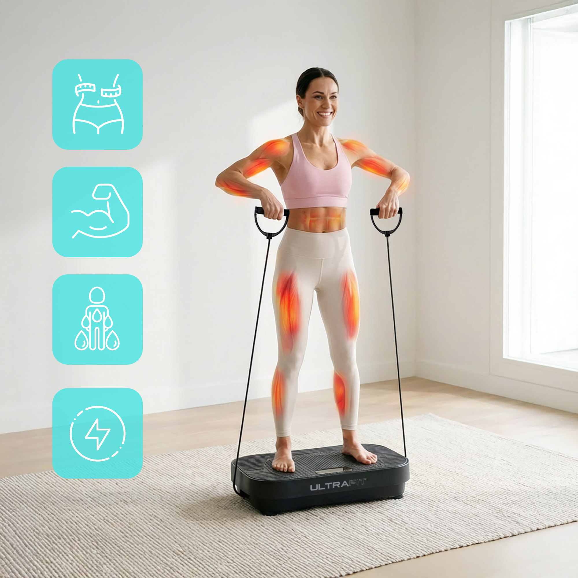 Using a vibration platform brings many health benefits regardless of training intensity. Even the smallest vibrations stimulate muscles, relaxing them and relieving tension. Regular training on the device improves overall fitness by oxygenating the body and enhancing circulation. The vibration platform is an effective aid in body shaping and fat reduction.