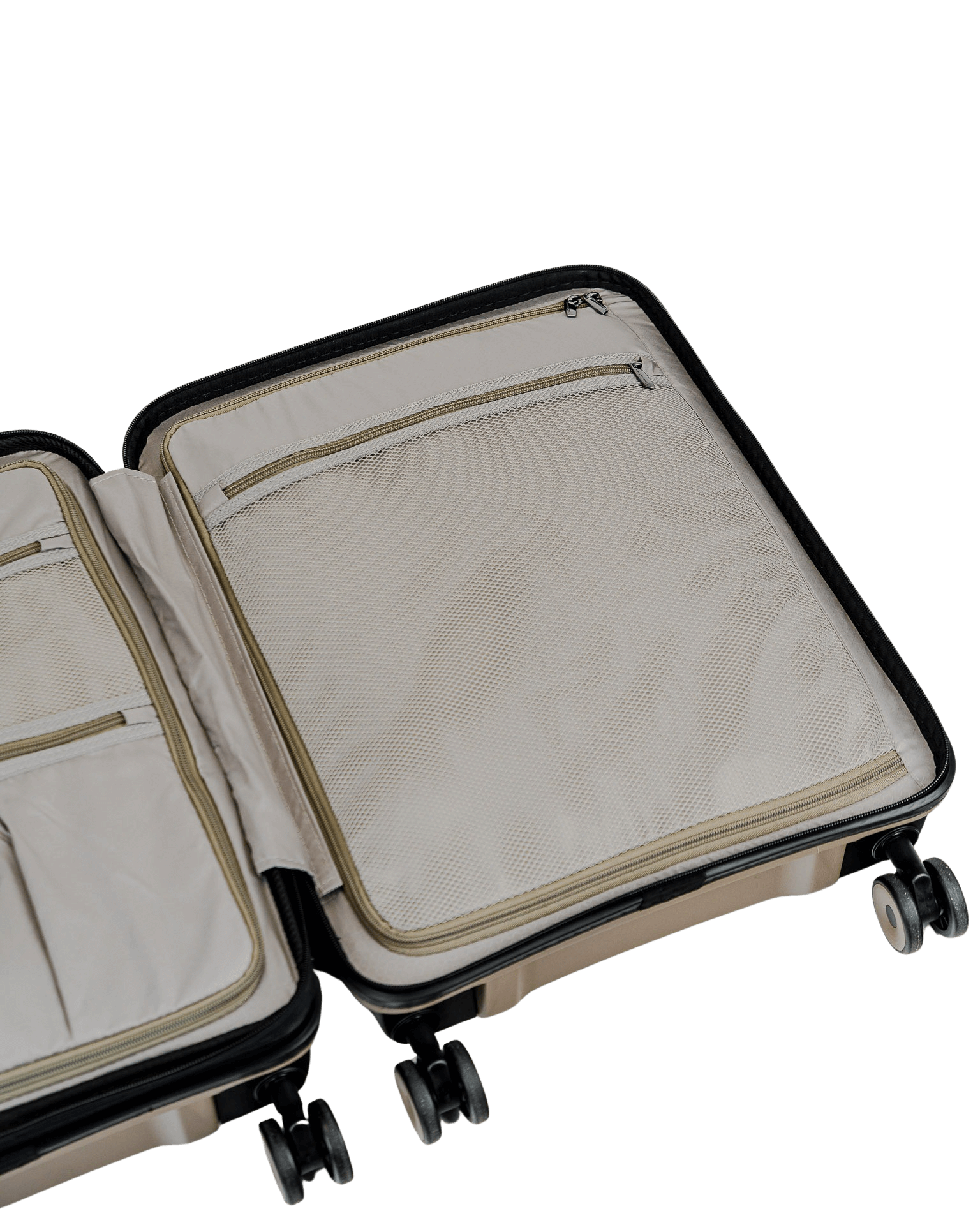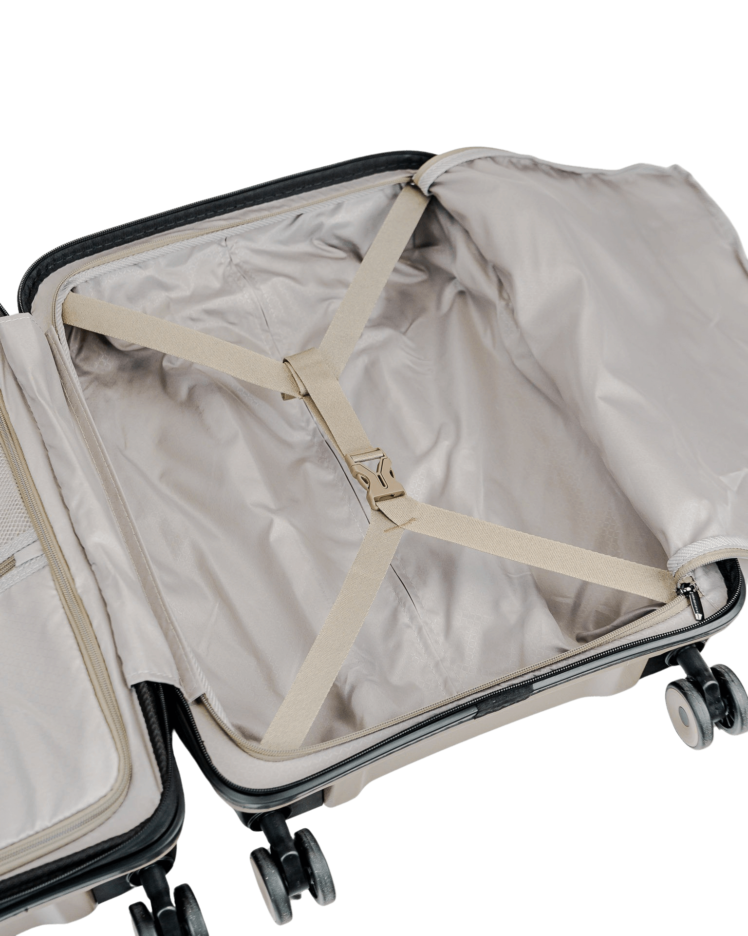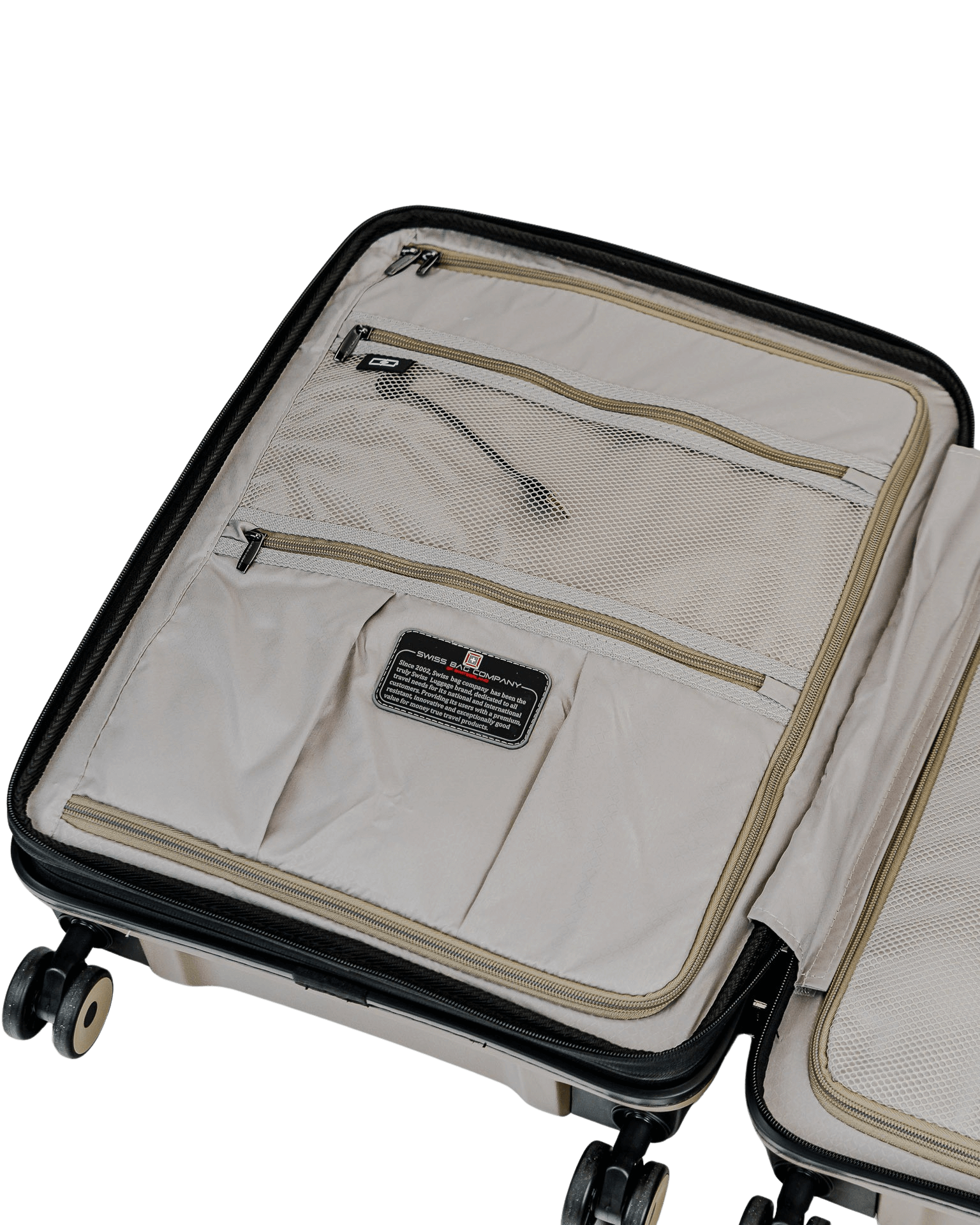 Inside, there are two well-organized compartments with zippered pockets and elastic straps to keep your belongings in place. The compartments are lined with an elegant fabric. One of the most significant advantages of the ECHO model is its expandable capacity. You can increase its volume by approximately 3 cm, providing more space for your items.
