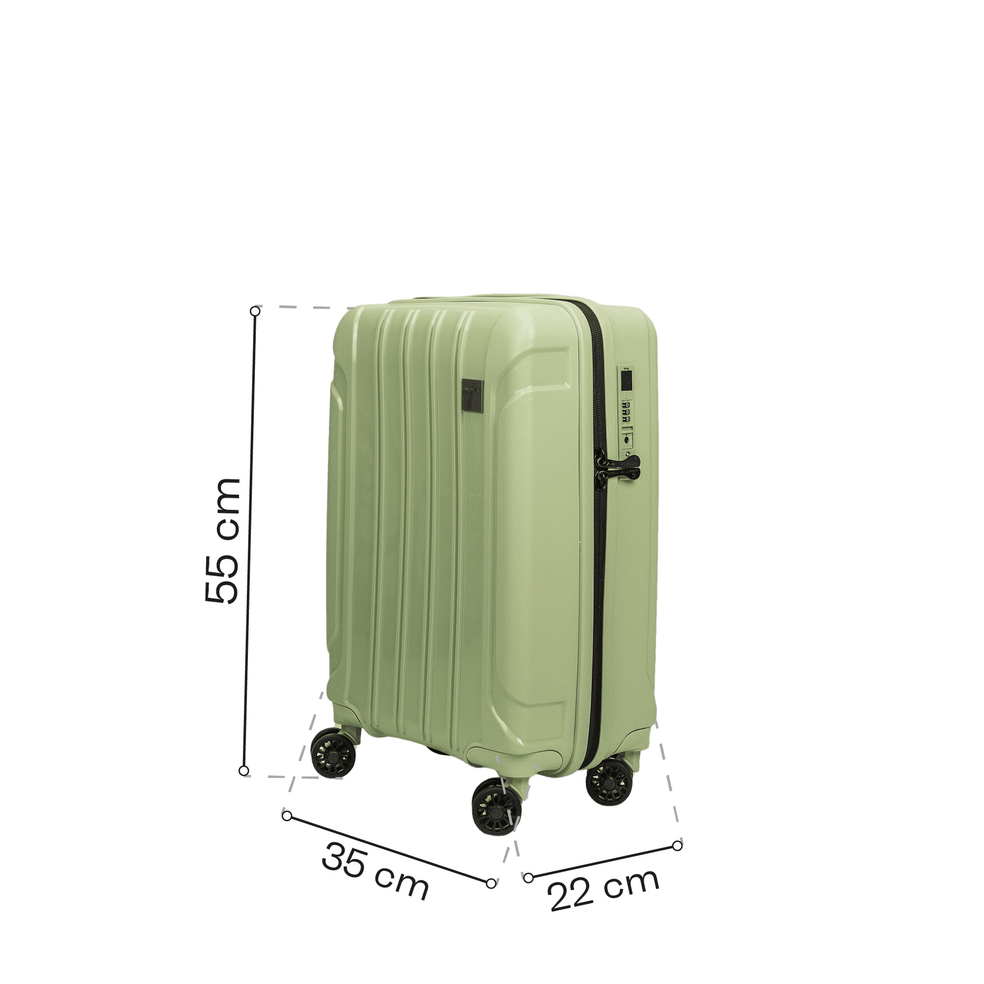 The collection was created with damage-resistant, high-quality polypropylene, which is lightweight and flexible, significantly improving comfort of use. The front of the suitcase features an original inscription with the brand name.