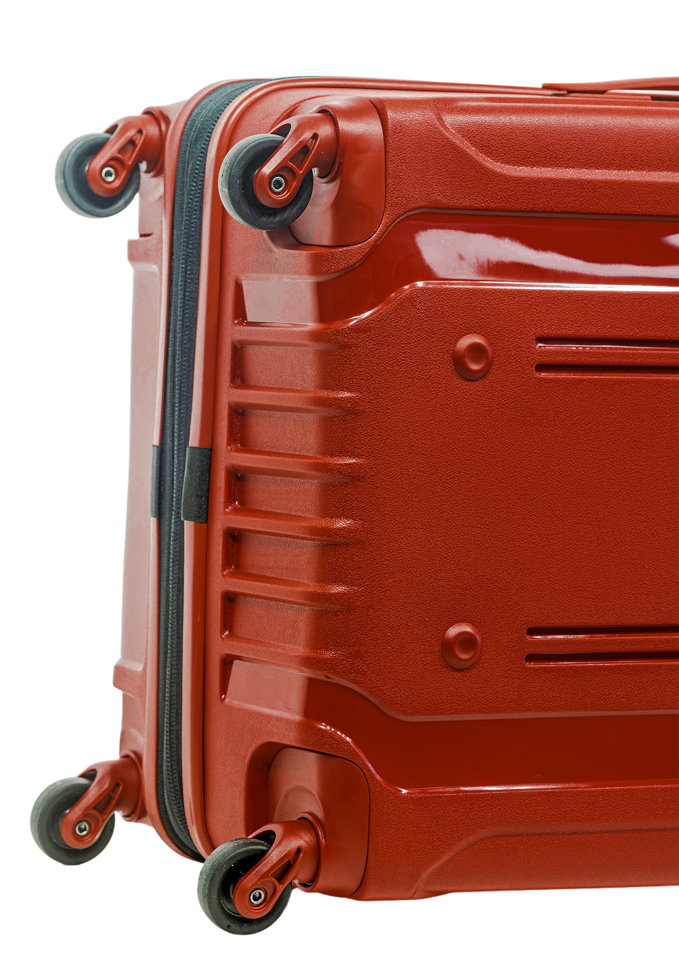 The four swivel wheels make it easy to move, and comfortable side handles make transferring the suitcase simple. The retractable handle on the double frame allows for optimal adjustment of the handle length for height and easy maneuverability, even in crowded rooms.