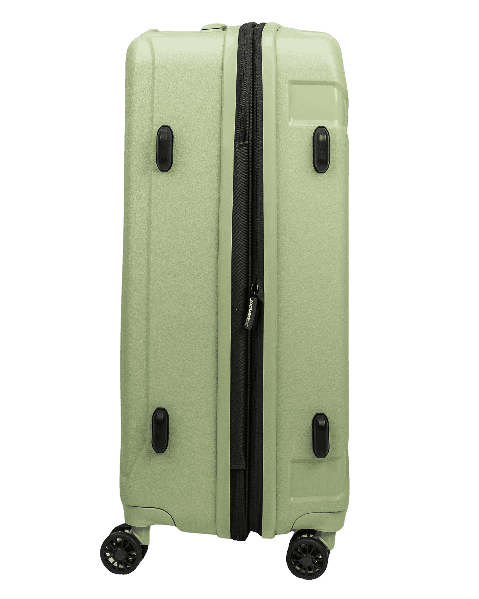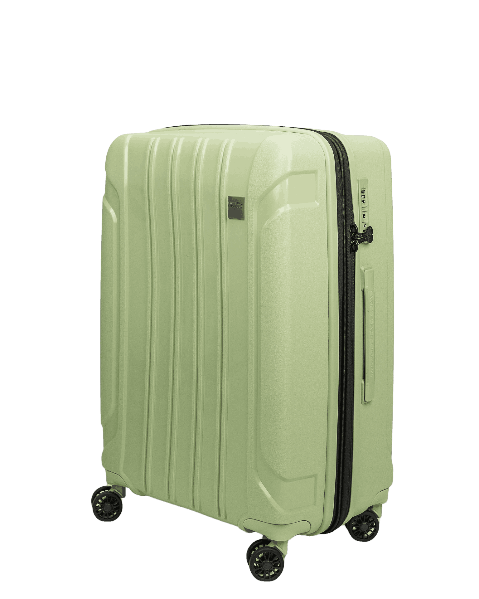 The collection was created with damage-resistant, high-quality polypropylene, which is lightweight and flexible, significantly improving comfort of use. The front of the suitcase features an original inscription with the brand name.