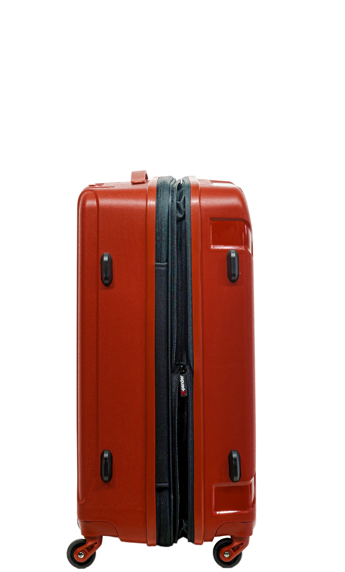 The four swivel wheels make it easy to move, and comfortable side handles make transferring the suitcase simple. The retractable handle on the double frame allows for optimal adjustment of the handle length for height and easy maneuverability, even in crowded rooms.