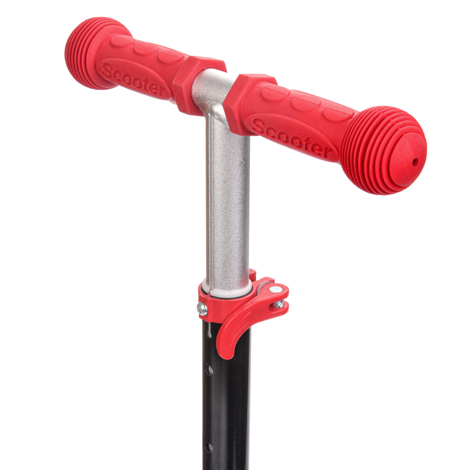 The T-bar handlebar with rubber grips provides control over the vehicle and a comfortable hold. The soft surface of the grips protects against calluses and abrasions on the hands. The handlebar rod can be easily disassembled with the help of a single button, making the scooter compact and easy to transport. Its height can be adjusted in 4 steps within the range: 60/65/70/75cm, allowing easy adaptation of the scooter to the child’s height.