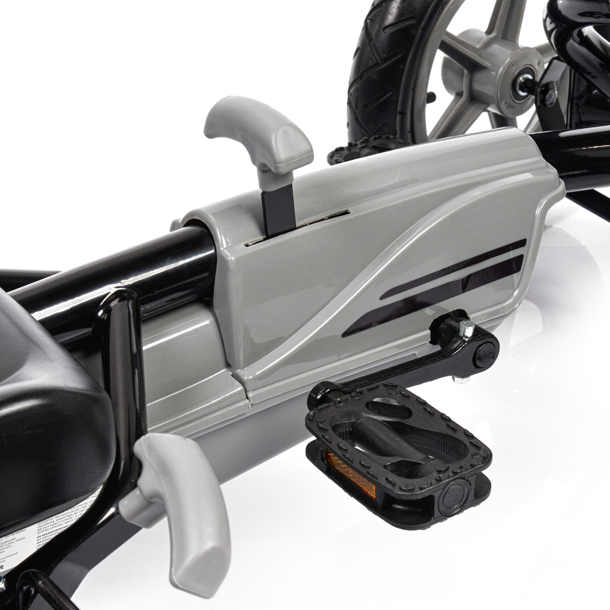 Stalowa konstrukcja ramy wyposażona w pedały oraz wzmocnioną kierownicę umożliwia jazdę do przodu i do tyłu. Mechanizm z napędem łańcuchowym umożliwia sprawne sterowanie pojazdem i jego napędem. Gokart posiada także neutralny tryb, tzw. „wolne koło” (brak obrotu pedałów) – przydatnego w trudniejszych warunkach terenowych, np. podczas zjazdu z górki. Hamulec ręczny dodatkowo podnosi bezpieczeństwo i wygodę użytkowania.