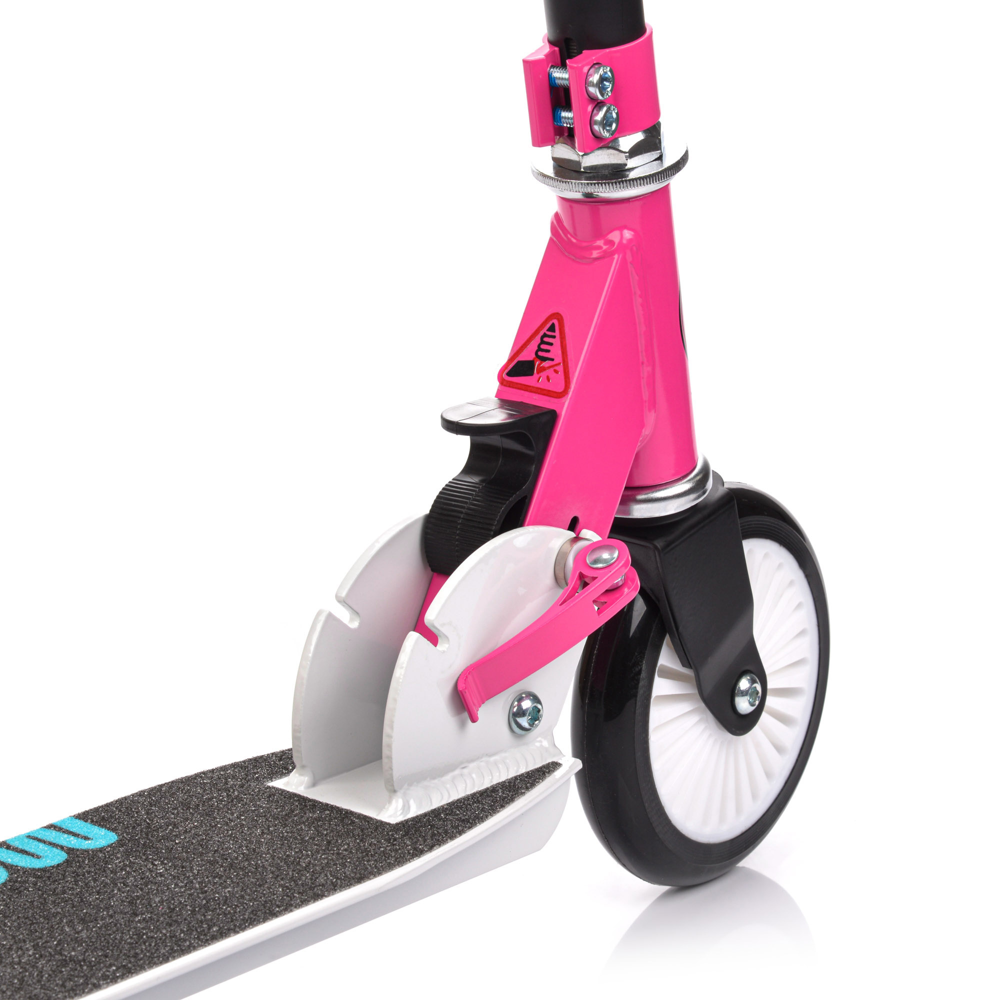 Dodatkowo pojazd został wyposażony w błotnik tylny chroniący przed ochlapaniem w razie deszczu, służący jednocześnie za hamulec. Dzięki składanej konstrukcji hulajnogę można szybko i łatwo złożyć, bez problemu przenieść lub schować.