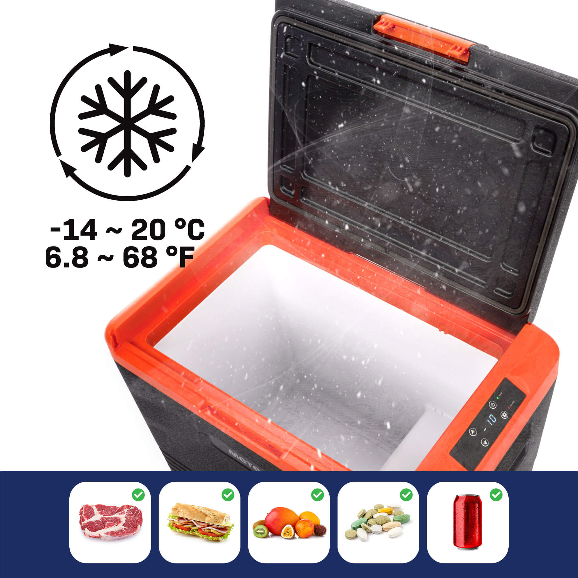 Duża komora z dogodnym dostępem zapewnia 45L pojemności i optymalne warunki do przechowywania nie tylko żywności i napojów, ale także i leków. Dzięki zaawansowanej technologii kompresorowej lodówka nie tylko chłodzi, ale także pozwala na mrożenie przechowywanych produktów, oferując pełną funkcjonalność w każdych warunkach. Szeroki zakres temperatury od +20 do -14°C, oferuje trzy możliwości – grzanie, chłodzenie i głębokie mrożenie.