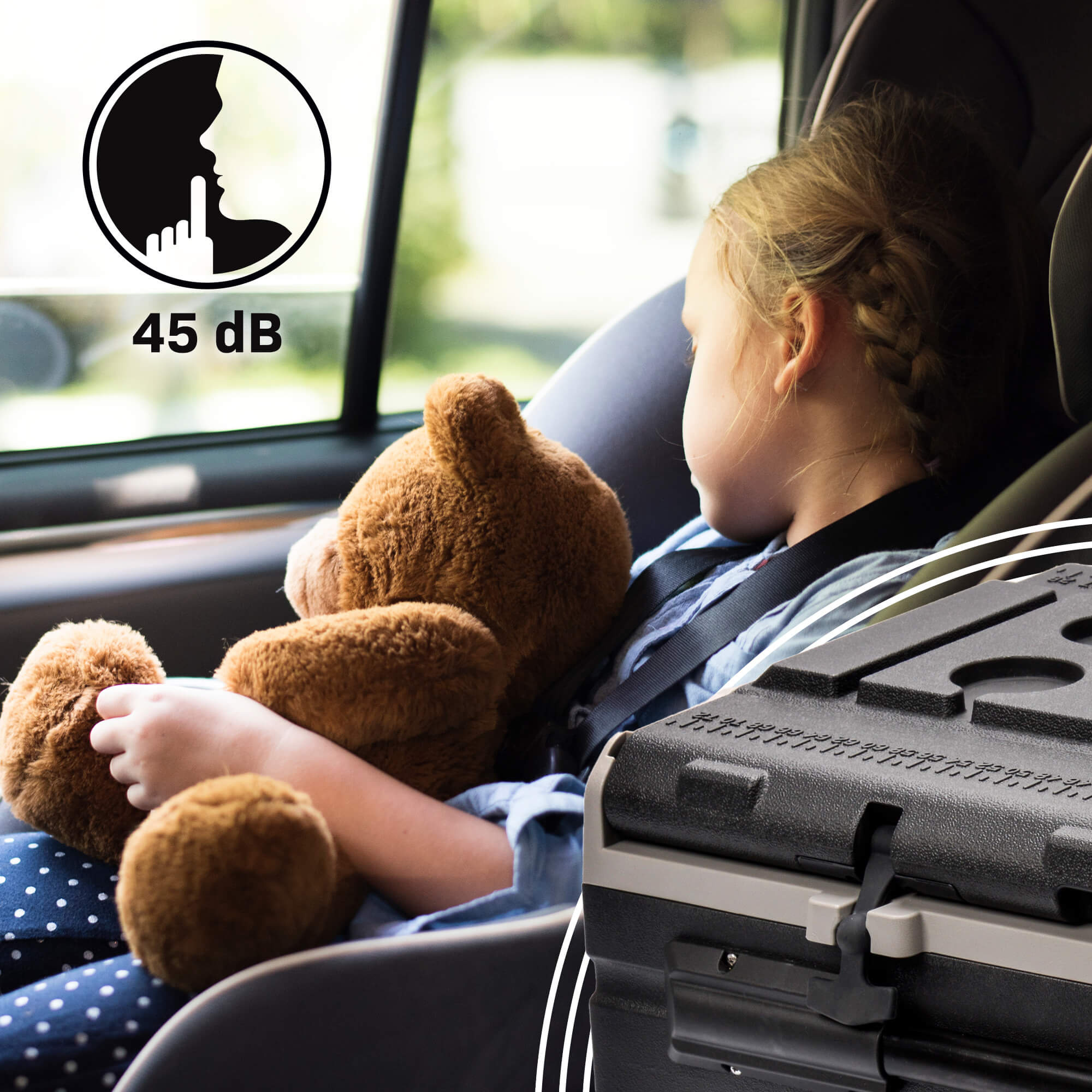 Niski poziom hałasu zapewnia cichą pracę i niezakłóconą podróż. Lodówka jest przystosowana do wykorzystania w warunkach campingowych.
