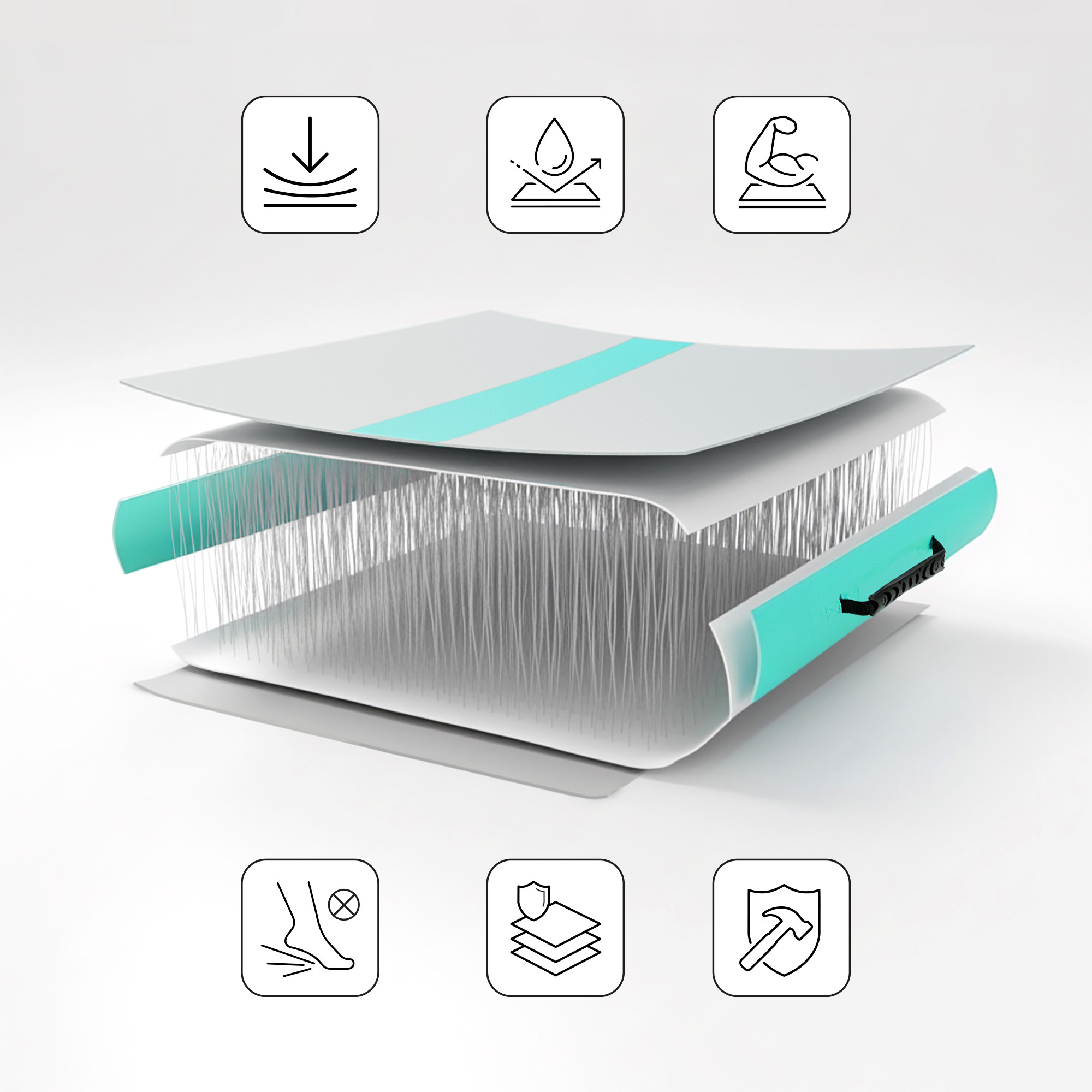Wysoka jakość – airtrack to bezpieczne podłoże, amortyzujące skoki, salta oraz inne ćwiczenia akrobatyczne. Zastosowanie technologii drop-stitch, czyli dwóch warstw tkaniny PVC łączonych pionowo, zapewnia gęste wypełnienie włóknami wewnątrz maty, sprawiając, że materiał zachowuje swój kształt podczas pompowania i ćwiczeń.