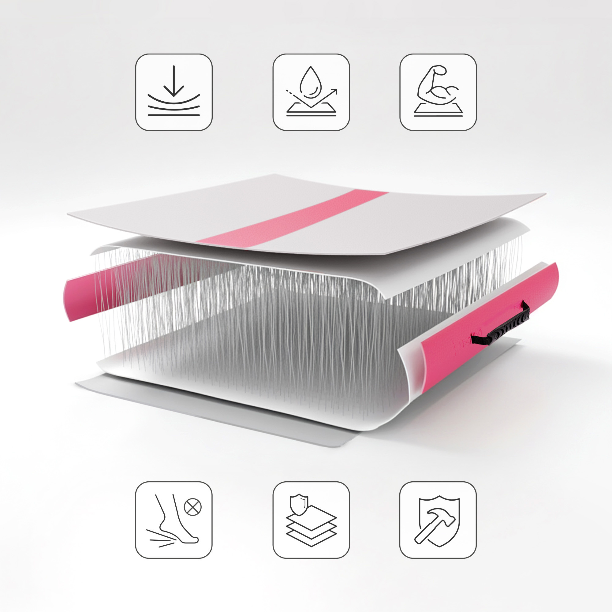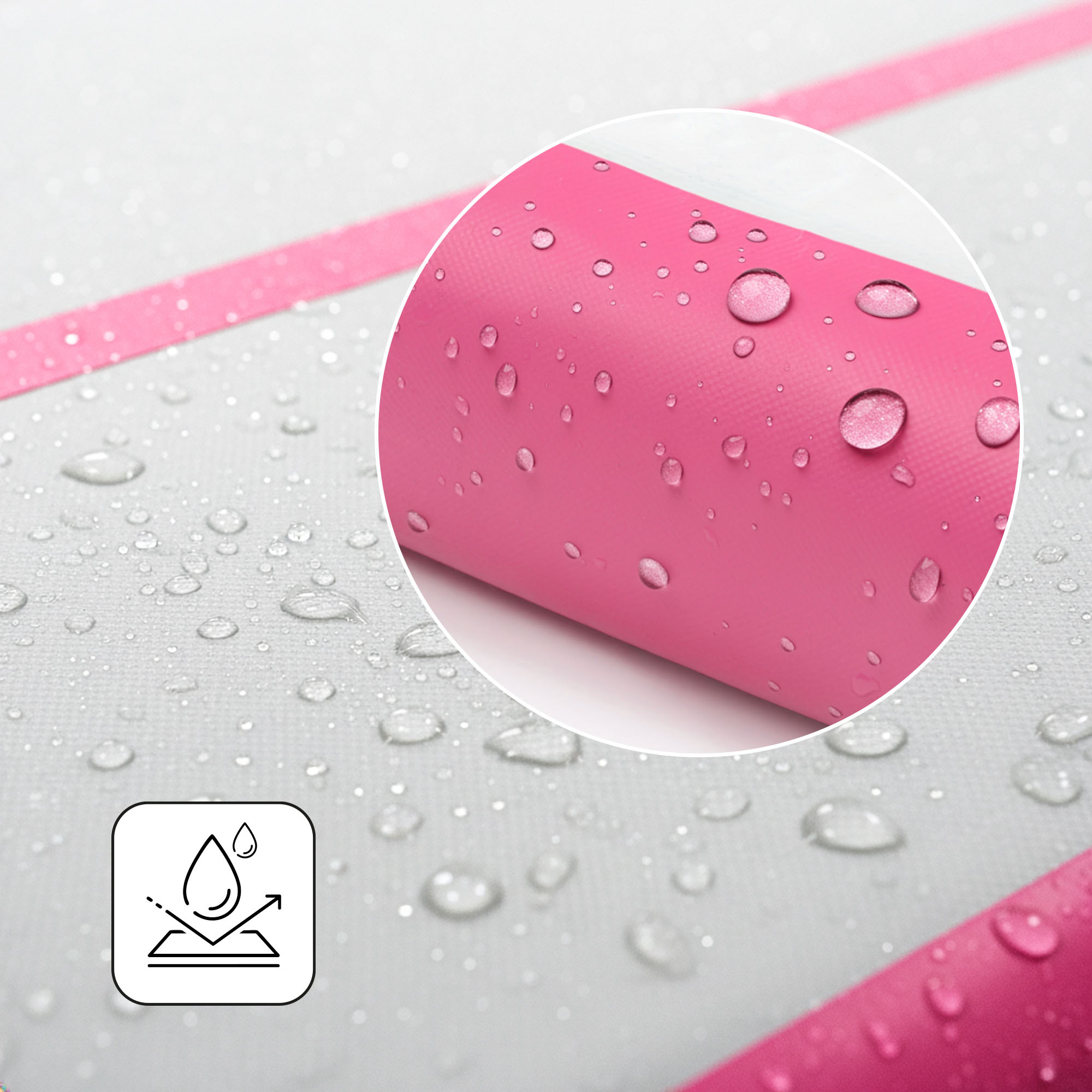 Wysoka jakość – airtrack to bezpieczne podłoże, amortyzujące skoki, salta oraz inne ćwiczenia akrobatyczne. Zastosowanie technologii drop-stitch, czyli dwóch warstw tkaniny PVC łączonych pionowo, zapewnia gęste wypełnienie włóknami wewnątrz maty, sprawiając, że materiał zachowuje swój kształt podczas pompowania i ćwiczeń.