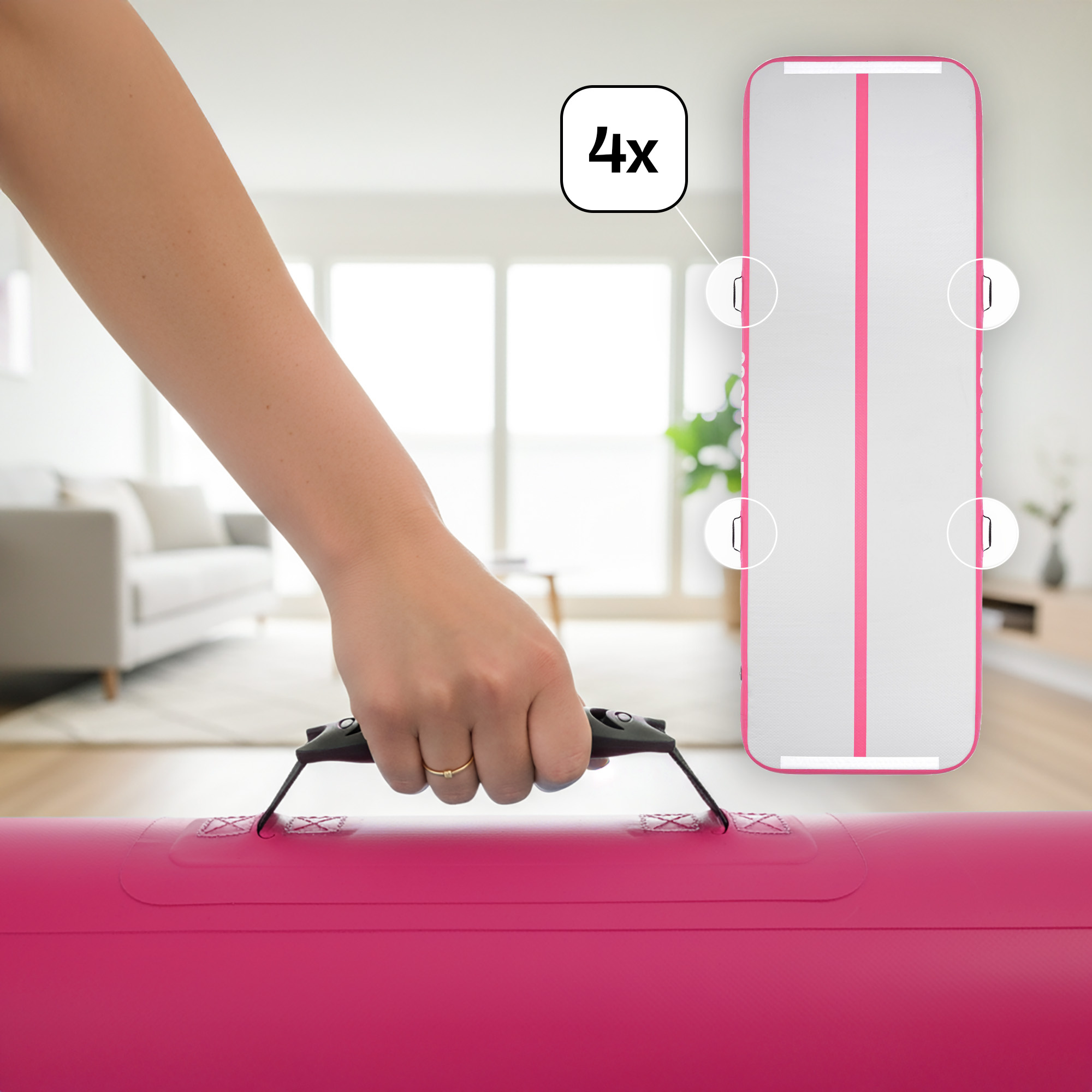 Airtrack doskonale sprawdzi się jako element wyposażenia sali gimnastycznej, klubu fitness, jak również do użytku domowego. Przyda się w małych przestrzeniach, zapewniając bezpieczne miejsce do treningu dorosłych, młodzieży i dzieci. Mata stanowi wygodne podłoże do ćwiczeń domowych i outdoorowych.