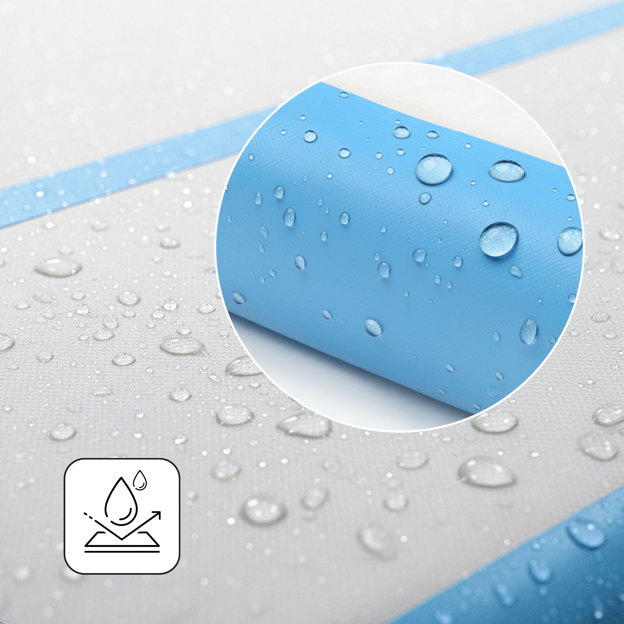 Wysoka jakość – airtrack to bezpieczne podłoże, amortyzujące skoki, salta oraz inne ćwiczenia akrobatyczne. Zastosowanie technologii drop-stitch, czyli dwóch warstw tkaniny PVC łączonych pionowo, zapewnia gęste wypełnienie włóknami wewnątrz maty, sprawiając, że materiał zachowuje swój kształt podczas pompowania i ćwiczeń.