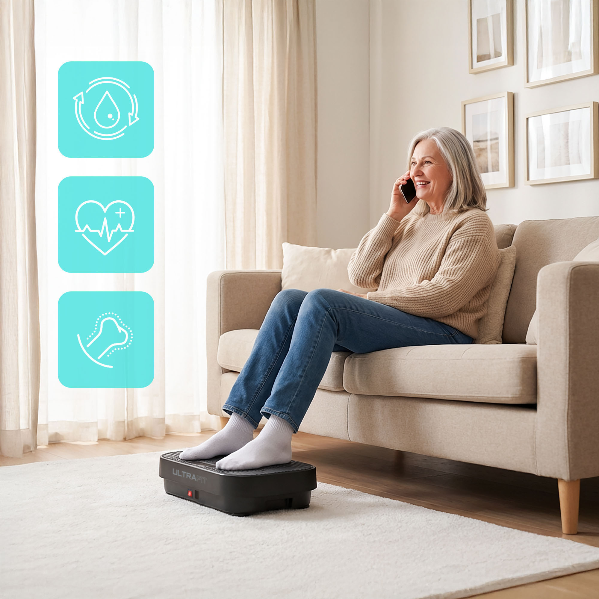 Ważna informacja: Intensywna praca urządzenia może mieć różny wpływ na organizm. Jeśli zmagasz się z dolegliwościami kardiologicznymi, ortopedycznymi lub neurologicznymi, zalecamy konsultację z lekarzem przed zakupem platformy wibracyjnej. Nie należy korzystać z urządzenia w przypadku ciąży, menstruacji, a także po zabiegach chirurgicznych, operacjach lub urazach. Nie należy także przeciążać mięśni i stawów nadmiernym korzystaniem z urządzenia.