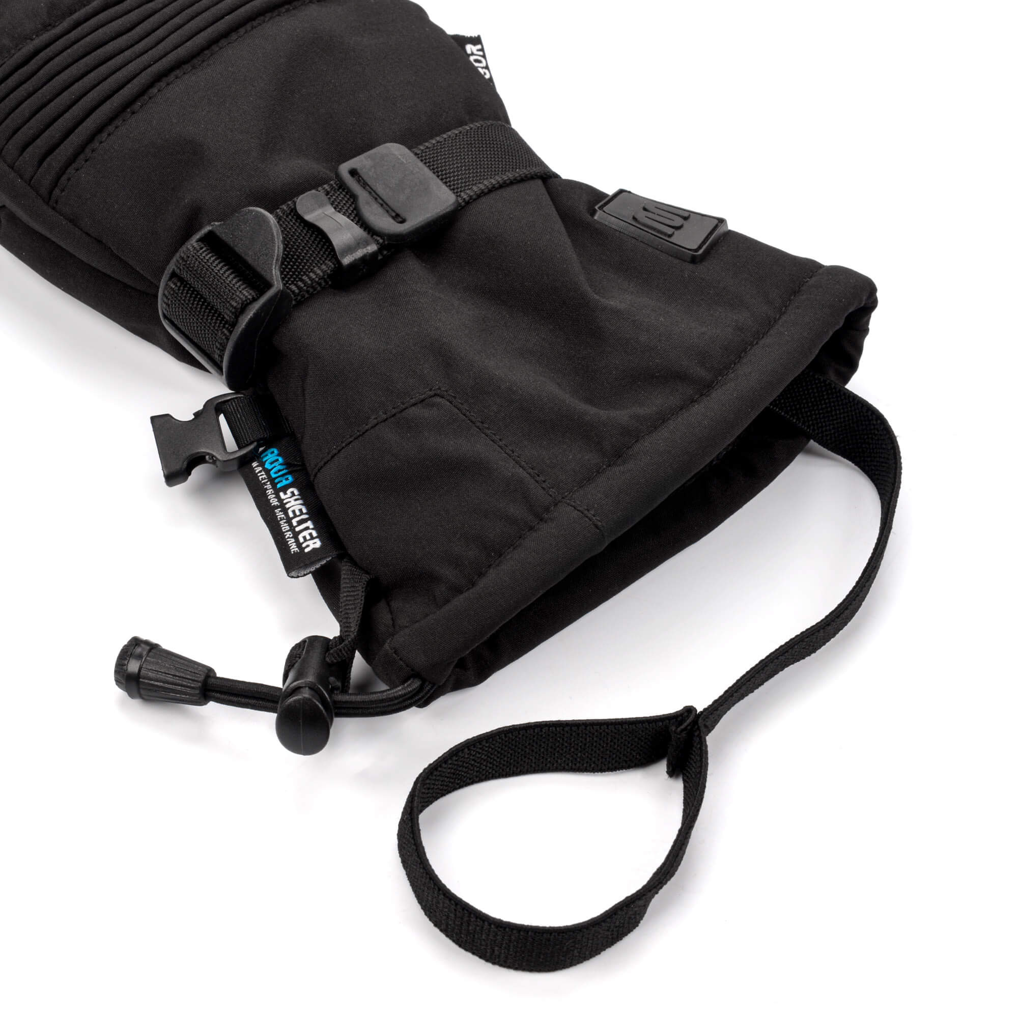 Ergonomia – regulacja za pomocą ściągaczy i sprzączek przesuwnych oraz gumki na nadgarstkach zabezpieczają wnętrze rękawic przed przedostaniem się chłodu i śniegu z zewnątrz. Sprawiają, że rękawice pozostają na swoim miejscu i nie zsuwają się z dłoni.
