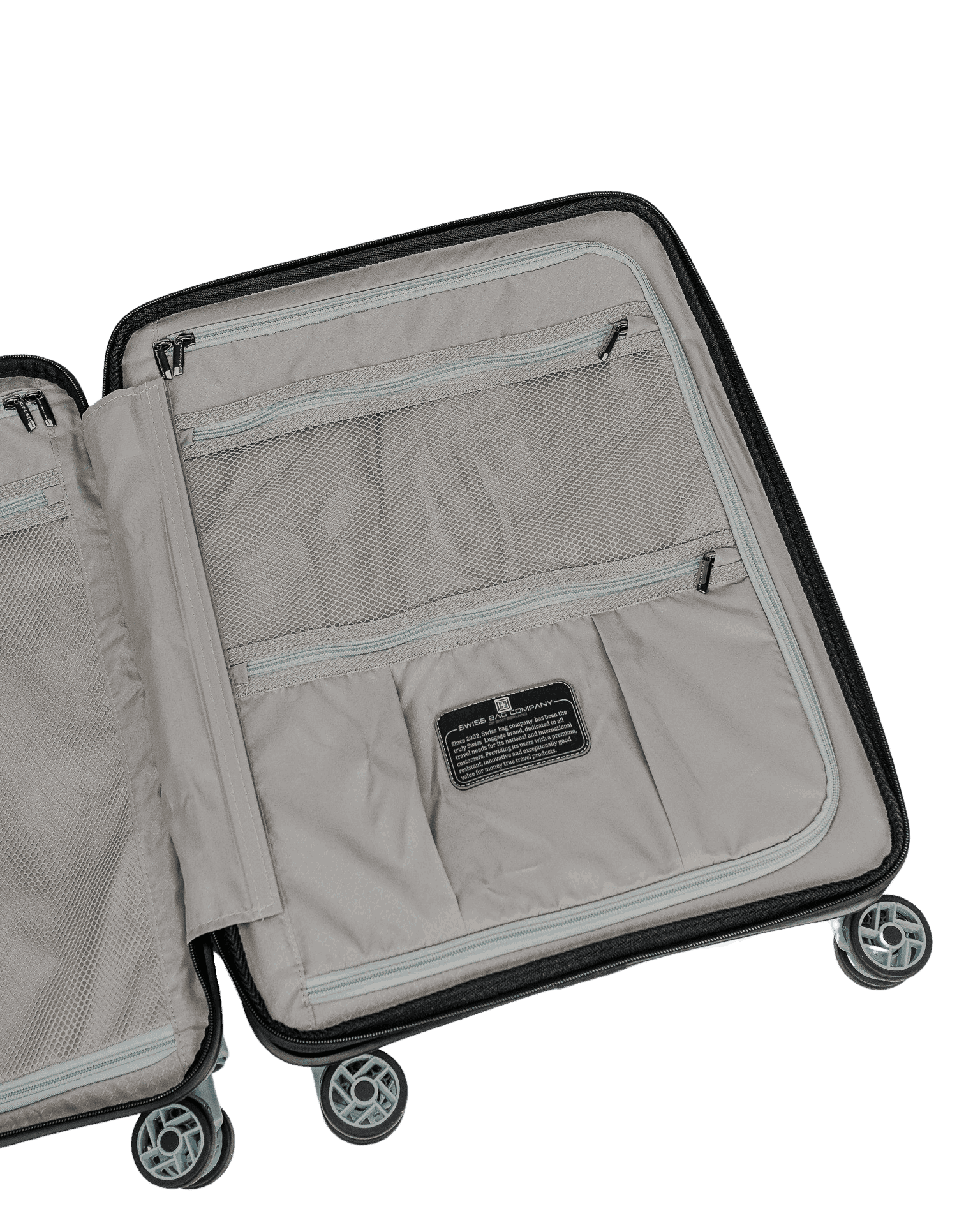 Wnętrze walizki podzielone jest na dwie komory. Obie posiadają kieszonki usprawniające organizację mniejszych rzeczy i drobiazgów oraz miejsce na odzież i większy bagaż. Kieszenie zamykane są zamkiem błyskawicznym, co zabezpiecza zawartość i ułatwia utrzymanie porządku. Wyściełane wnętrze jest odporne na przetarcia i ułatwia utrzymanie porządku.
