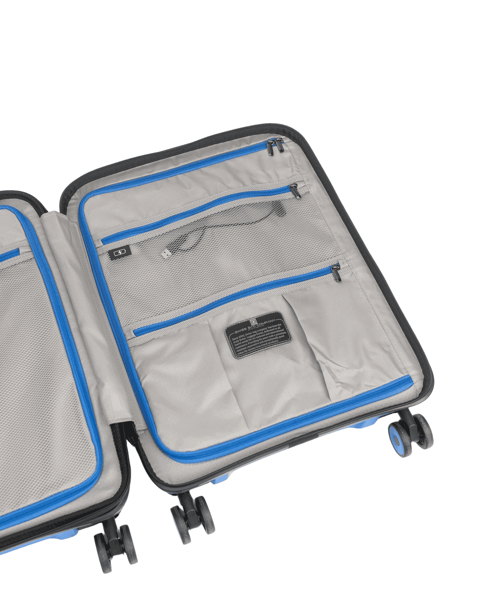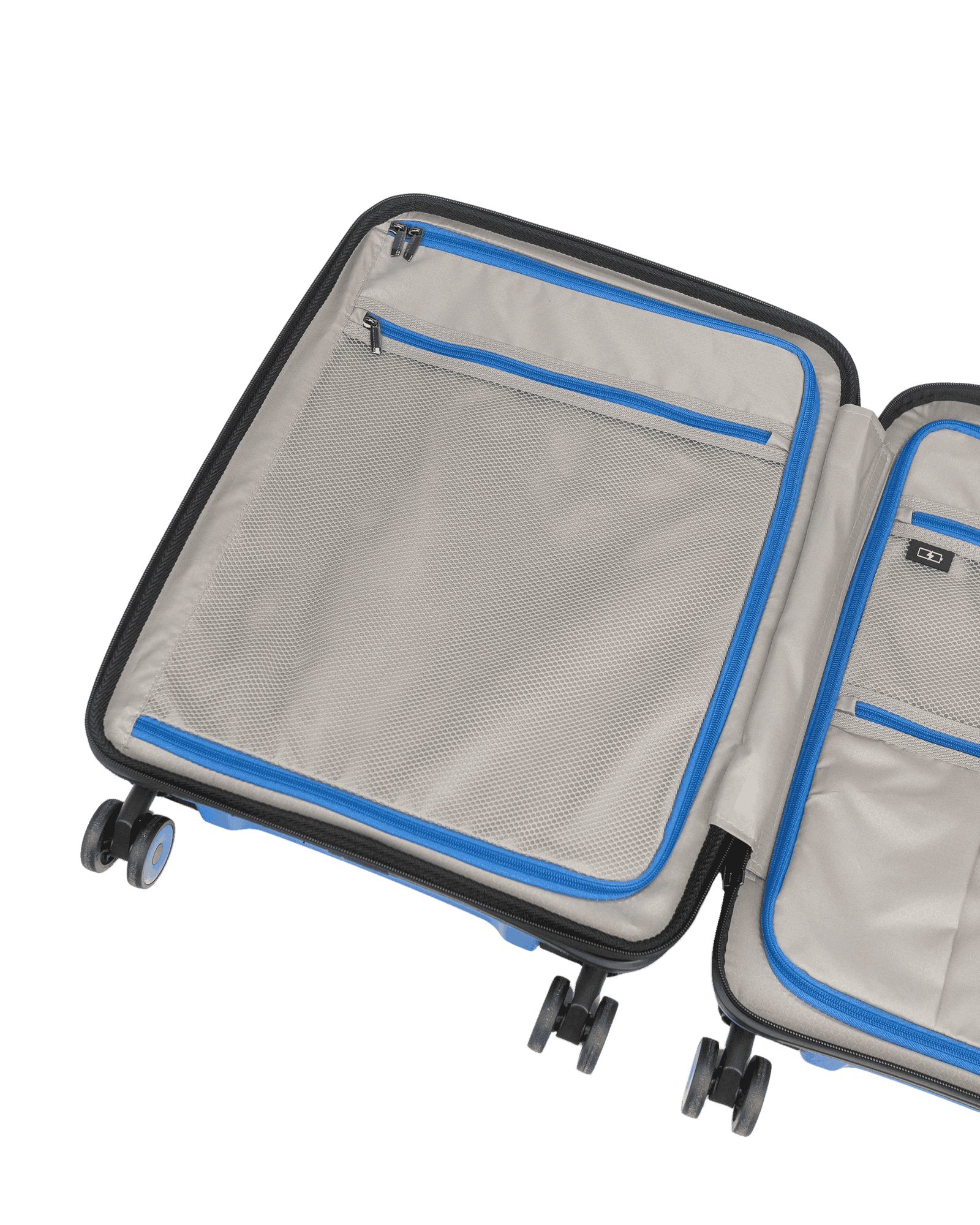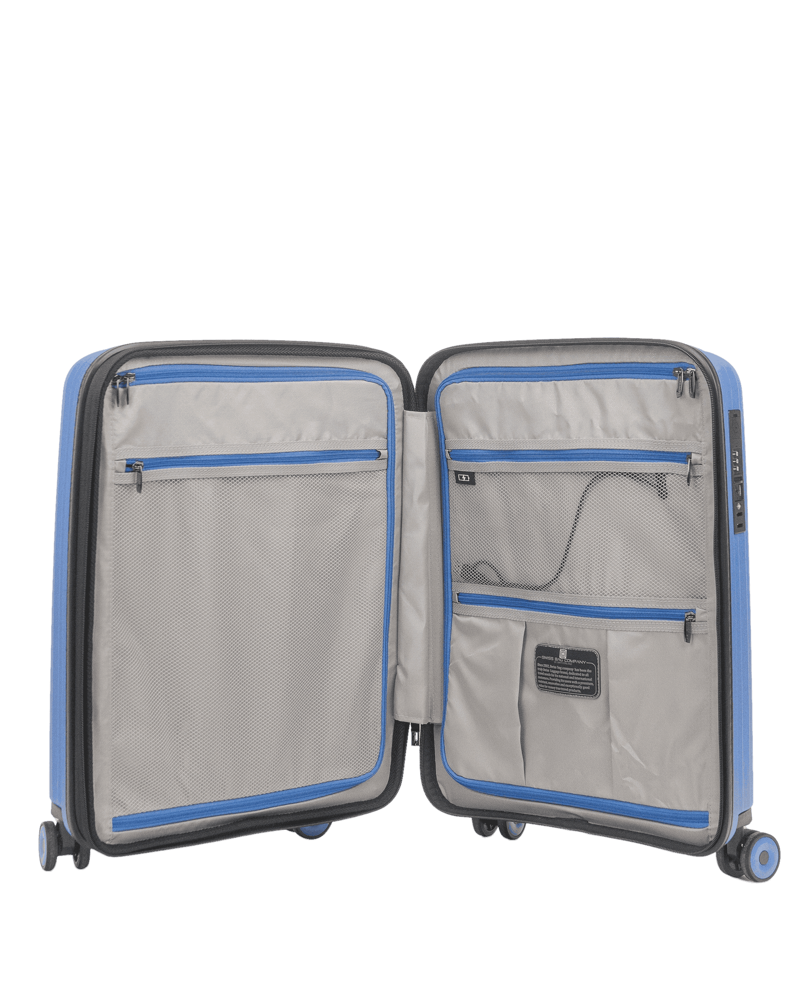Wymiary walizki pozwalają na swobodne przemieszczanie się z nią po lotnisku oraz przechowywanie jej pod siedzeniem lub w schowku samolotu.