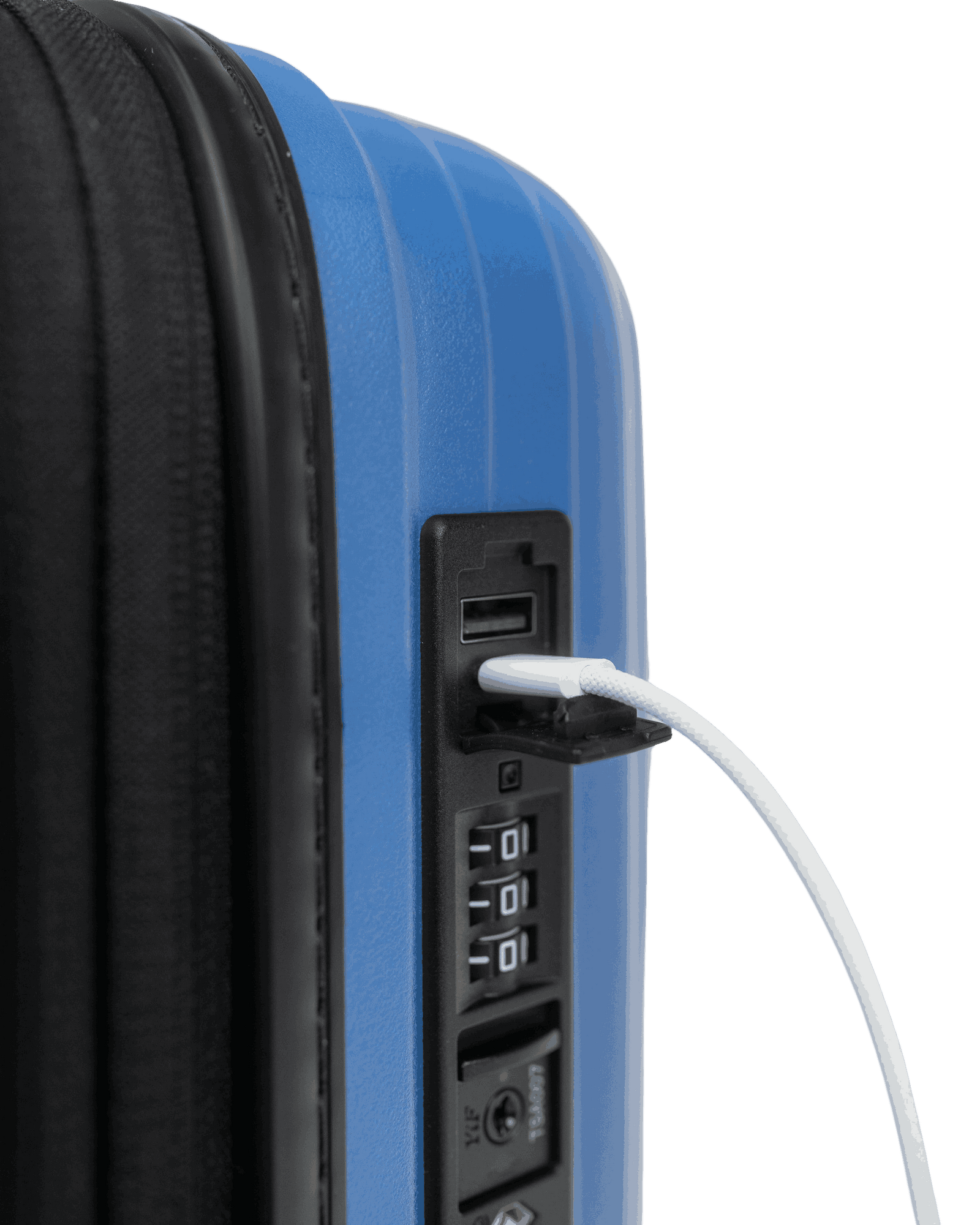 Walizka wyposażona została w gniazdo USB, dzięki któremu, możemy podpiąć urządzenia mobilne do Powerbanka.