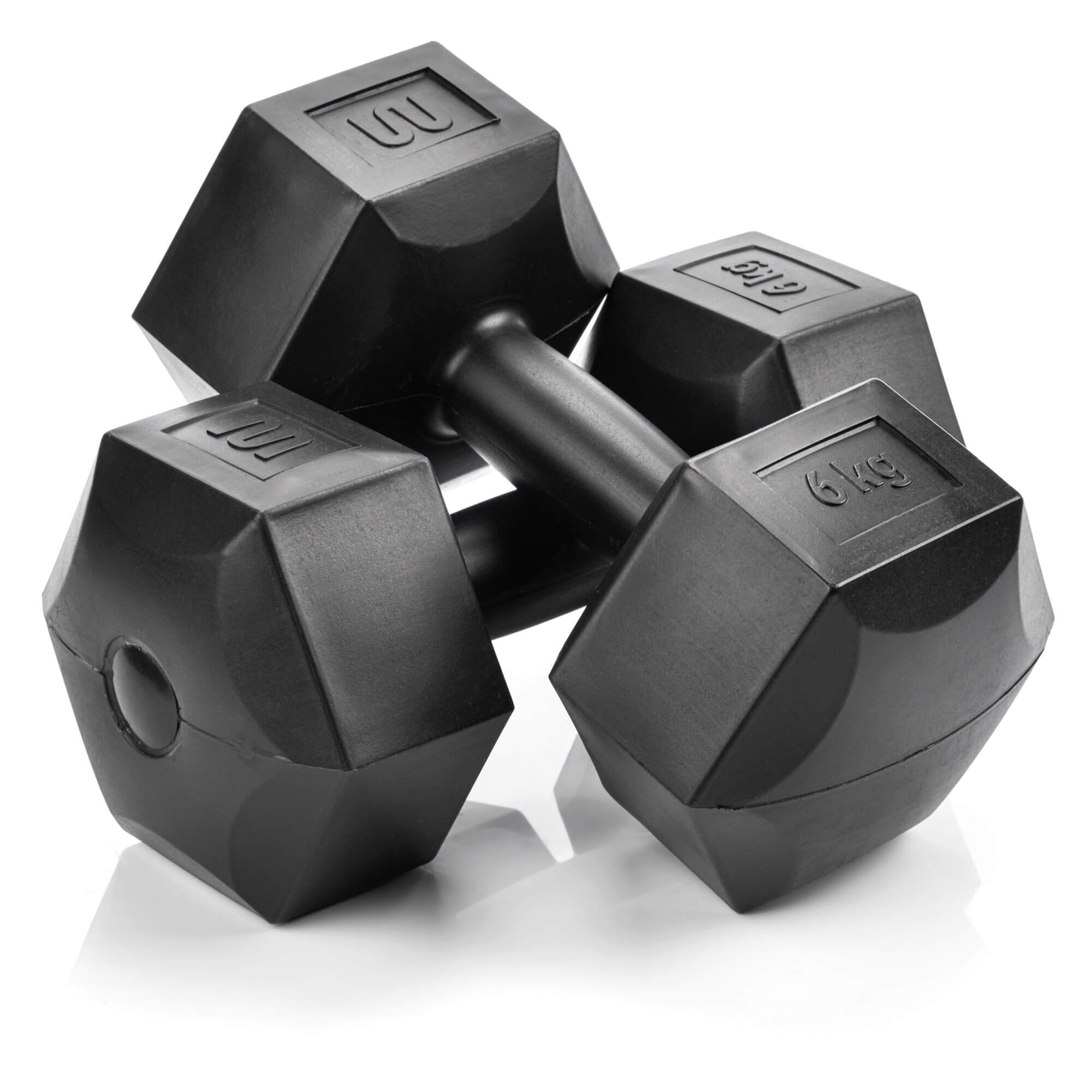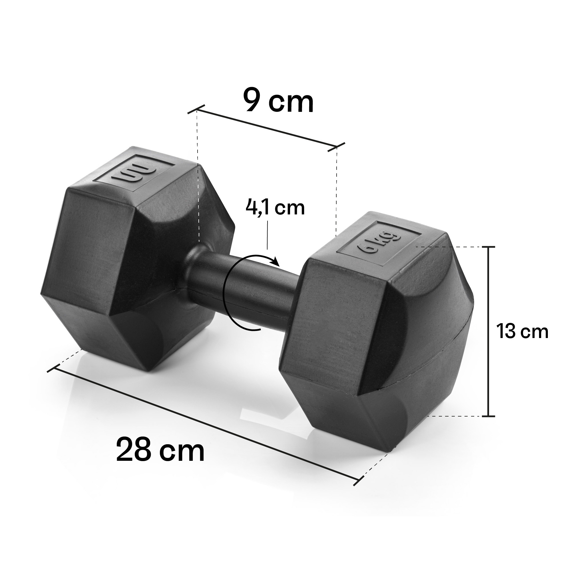 - Zestaw zawiera jedną parę hantli o masie 2x6kg.